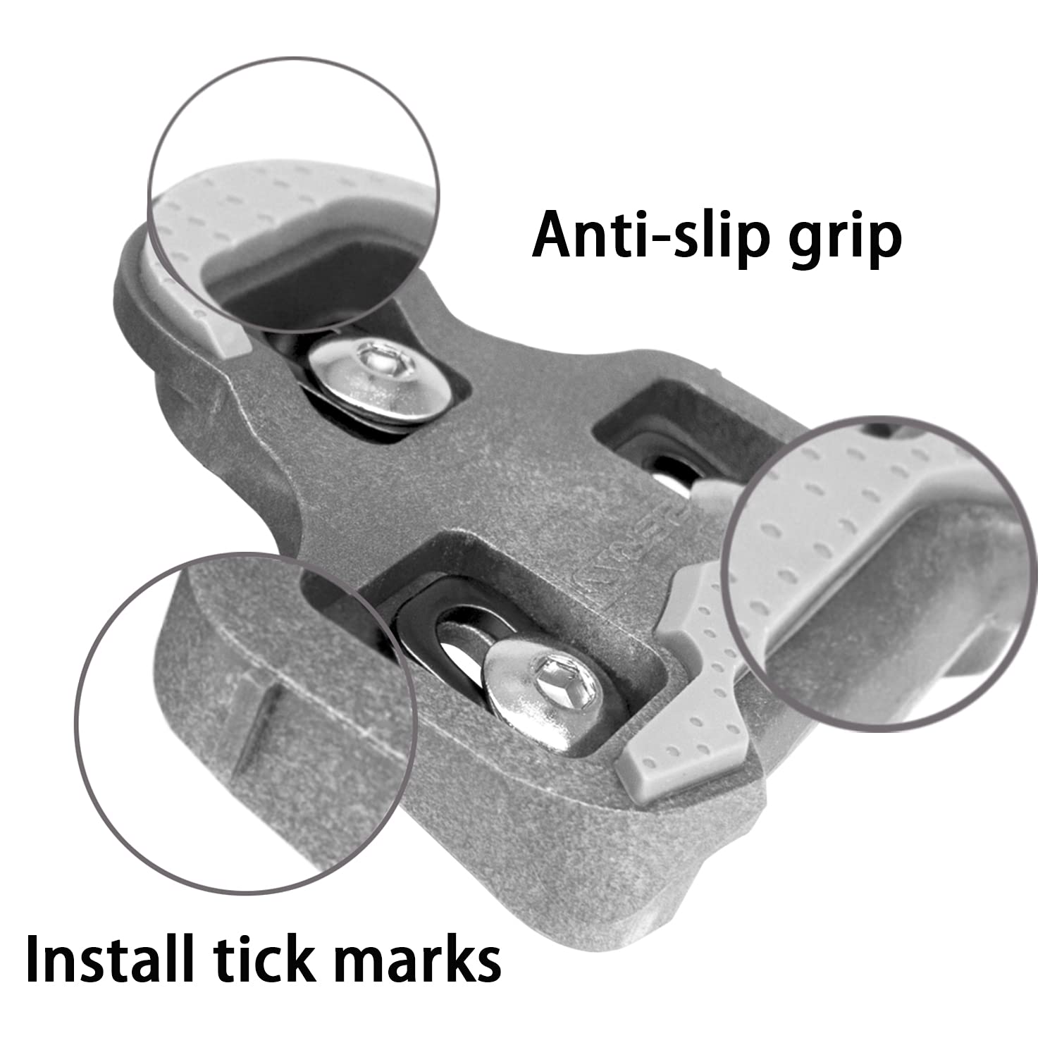 HEPINGJIANGENBO SP-110 クリートは、合成素材、軽量で高い材料強度で作られています。 SP-110クリートはLook Keoのバネ式ペダルと互換性があります。 滑り止めゴムがクリートに取り付けられているので、バイクから脱出時にライダーが誤って滑るのを防ぎます。 注意: Look Bladeペダルには対応していません。