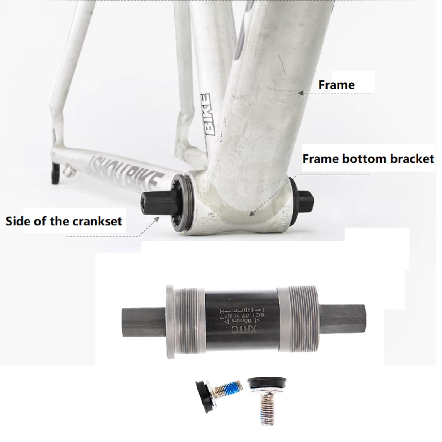 【適用車種】フレーム長68mm、クランクセットの正方形穴は許容。
