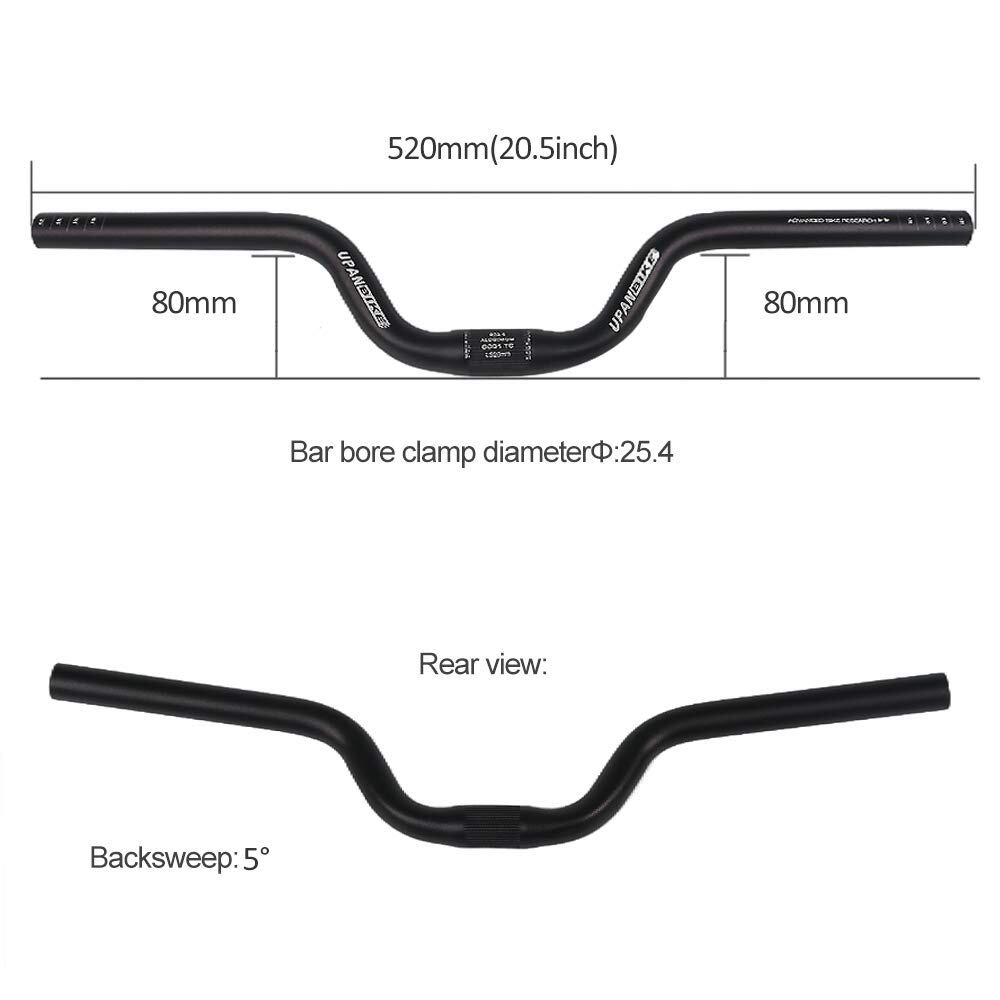 UPANBIKEバイクハンドルバー 25.4mm 520mmライザーバー アルミニウム合金 自転車ハンドルバー ライズ80mm 固定ギアバイク、マウンテンバイク、ロードバイク用
