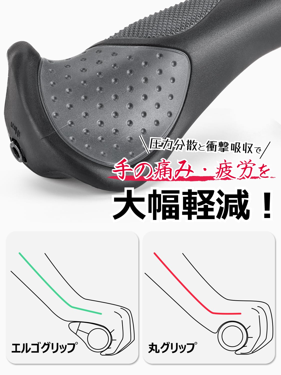 CXWXC 自転車 グリップ エルゴ ハンドルグリップ 衝撃吸収 疲労軽減 滑り止め 耐久性 取付簡単