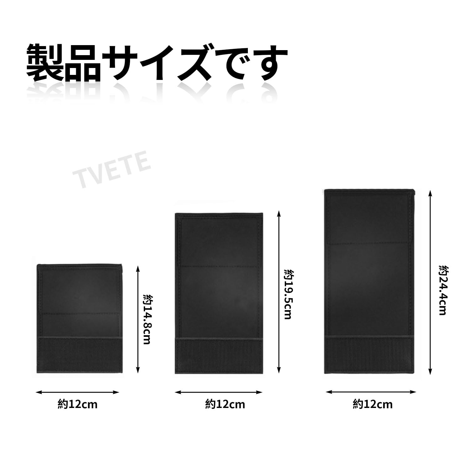 製品仕様:フレームプロテクター3枚セット、3サイズ、Sサイズ:12.8*12cm、Lサイズ:19.5*12cm、XXLサイズ:24.4*12cm。