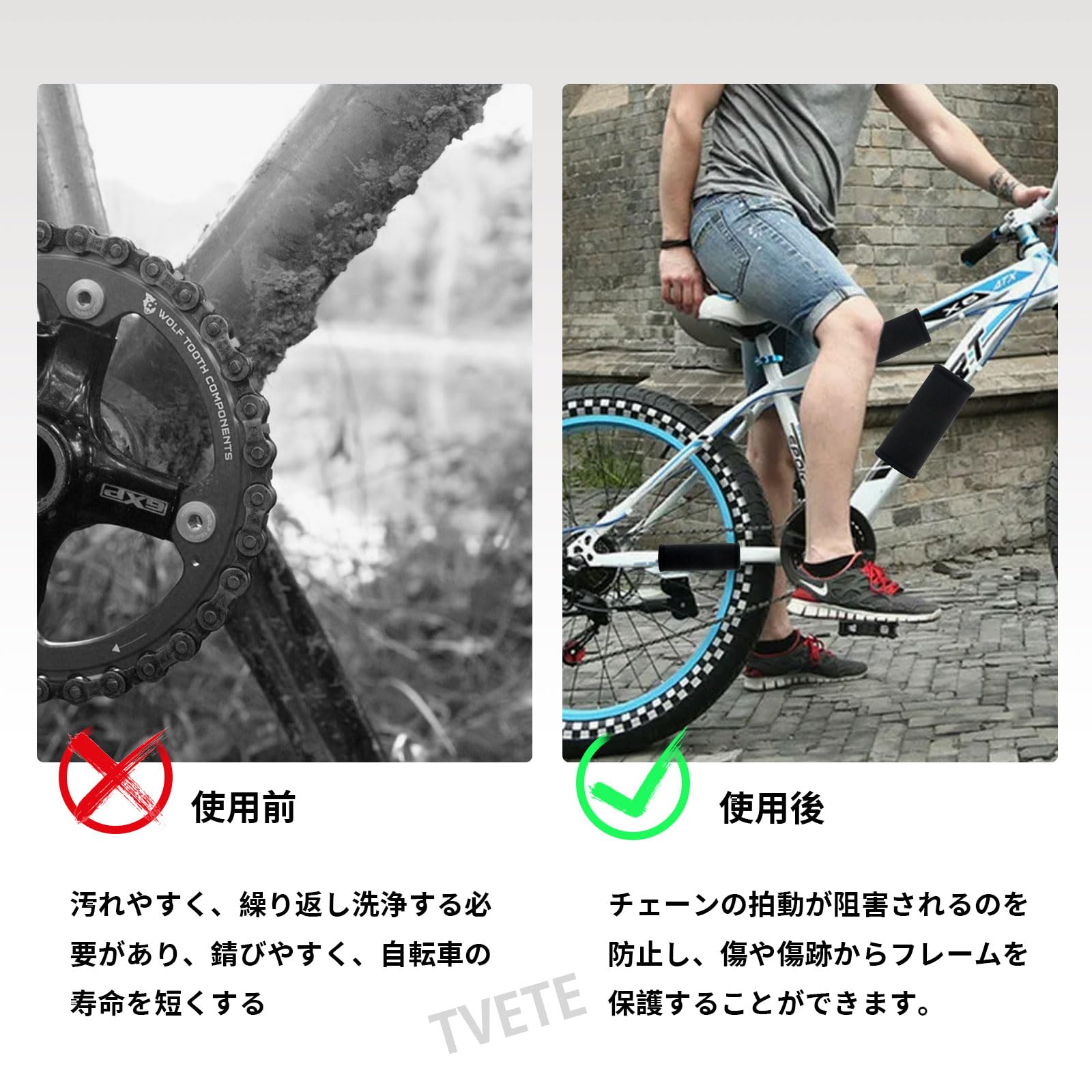 幅広い用途:このフレームカバーは、スクーター、マウンテンバイク、ロードバイクなど、ほとんどの自転車に適しています。注:使用するときは、表面をきれいにし、汚れやほこりを取り除き、自然乾燥してください。