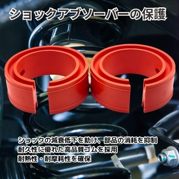 【高性能な振動吸収アイテム】自動車のサスペンションシステムに装着することで、走行中の振動や衝撃を緩和する高機能スプリングゴムです 段差や悪路でも安定した走行性能を確保し、ショックの伝達を軽減 快適な乗り心地を追求する方や、サスペンションの補強を求めるユーザーに最適です