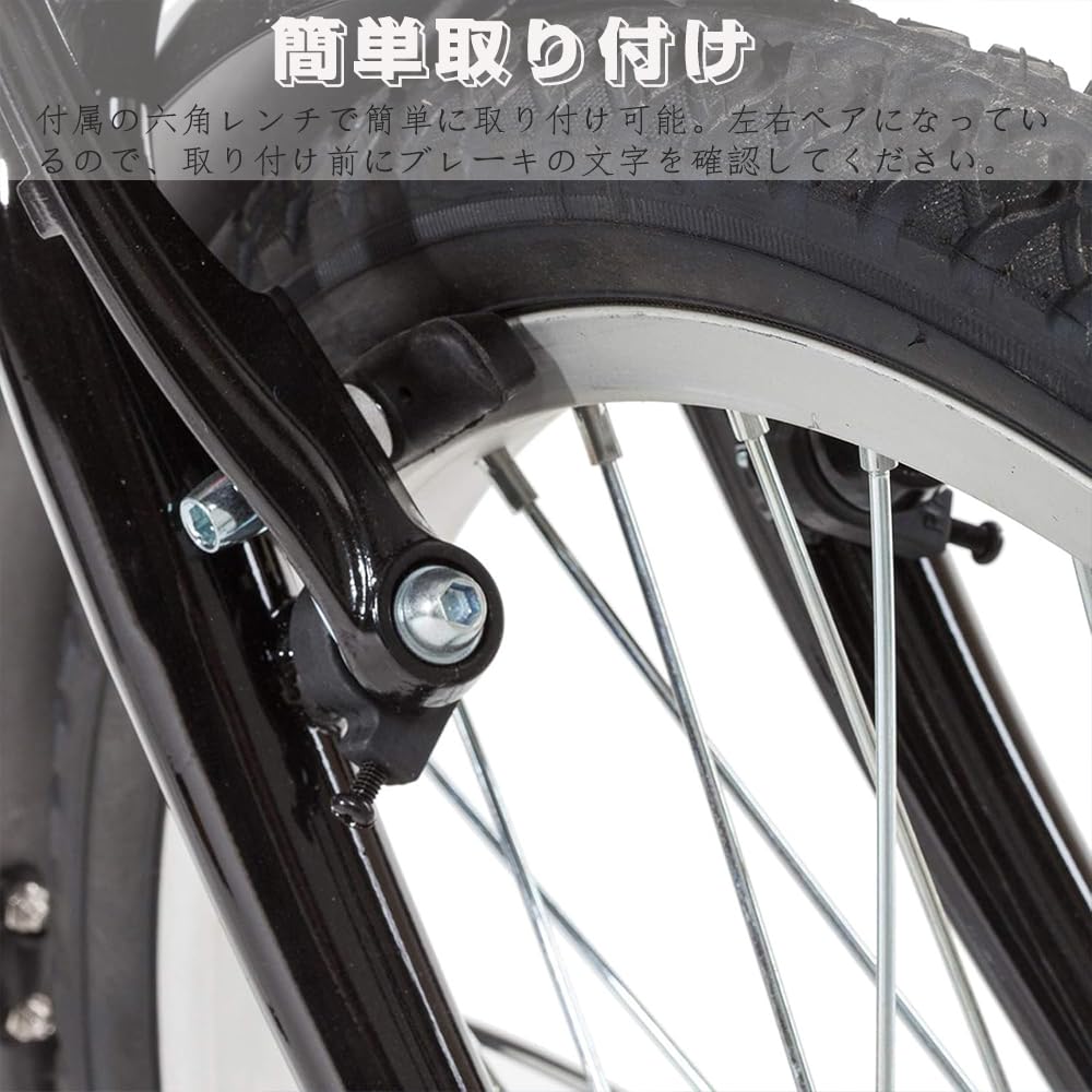 【簡単取り付け】:付属の六角レンチで簡単に取り付け可能。左右ペアになっているので、取り付け前にブレーキの文字を確認してください。