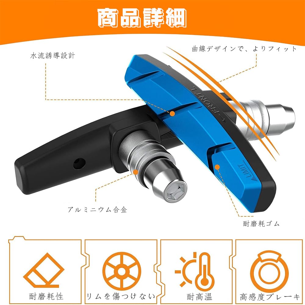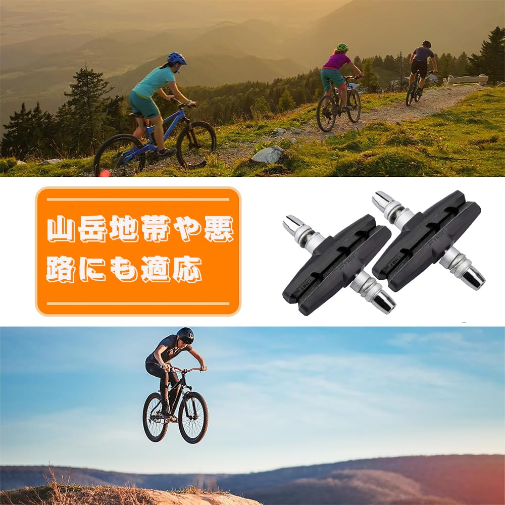 【高品質素材】:天然合成ゴムとアルミニウム製のVブレーキ4個セット。サイズは70mmで、耐摩耗性に優れ、消音効果や除染効果が期待できます。