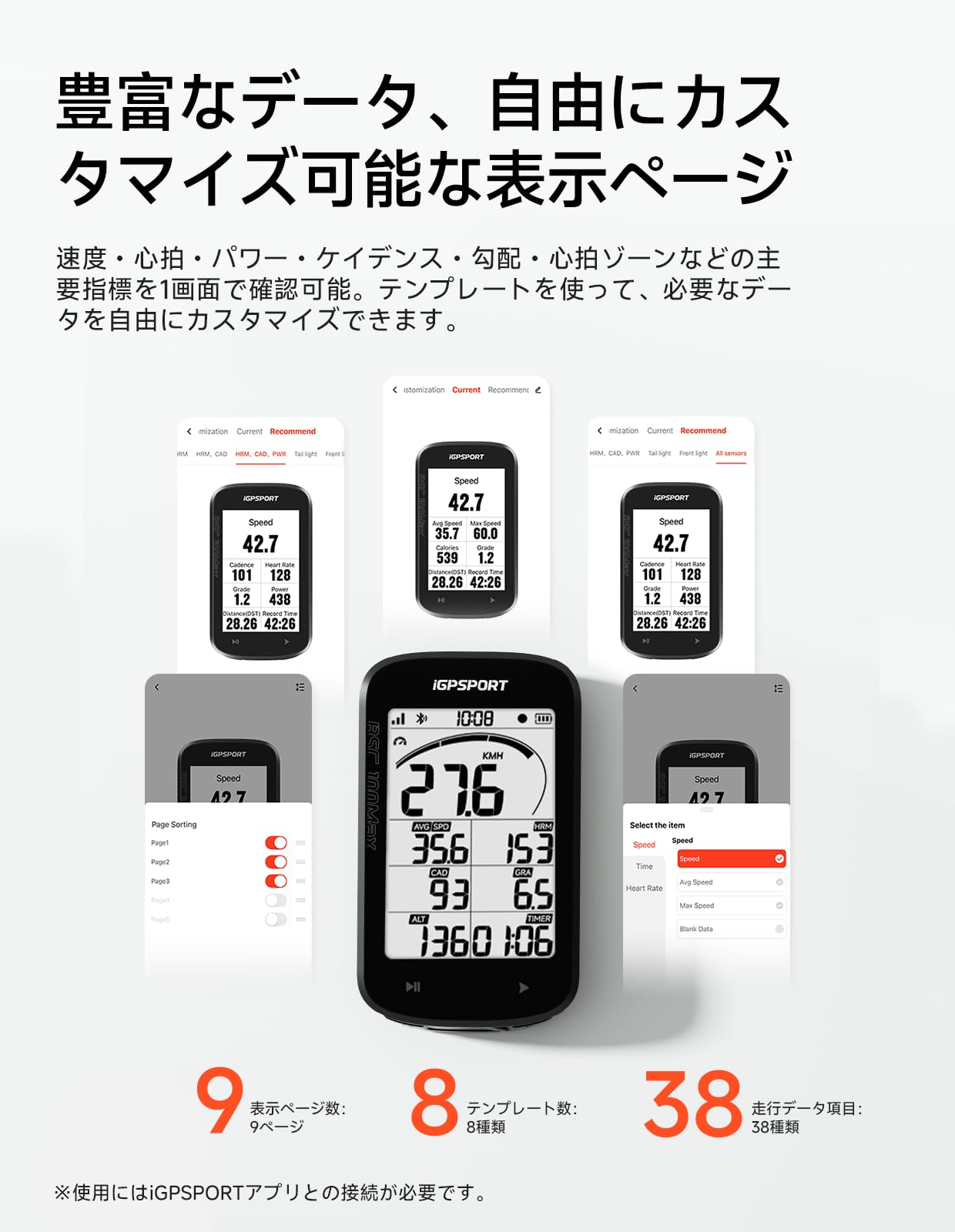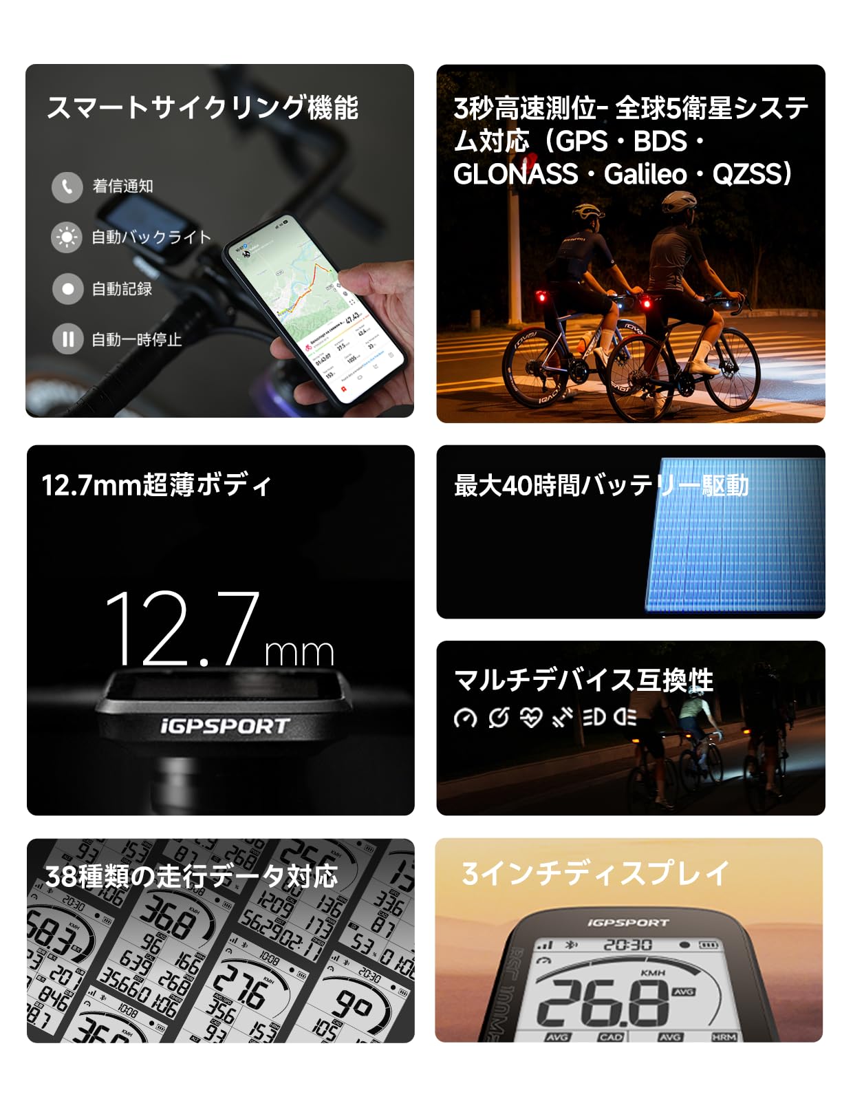 iGPSPORT BSC100MAX サイクルコンピュータ3.0インチGPSサイコン サイクルコンピューター Bluetooth5.0対応 スマートリマインダー スマートライト連携 IPX7防水 40時間 Strava同期 Type-C 高速充電 日本語説明書付き