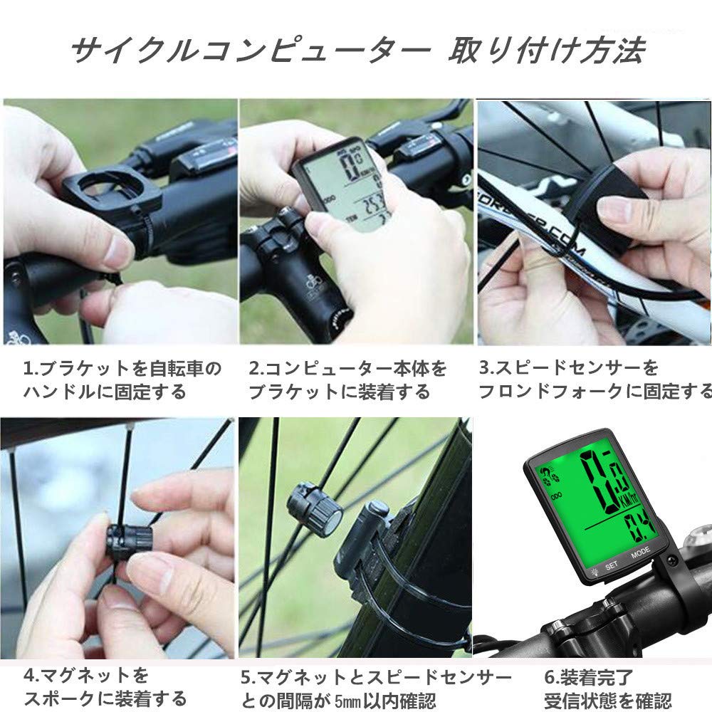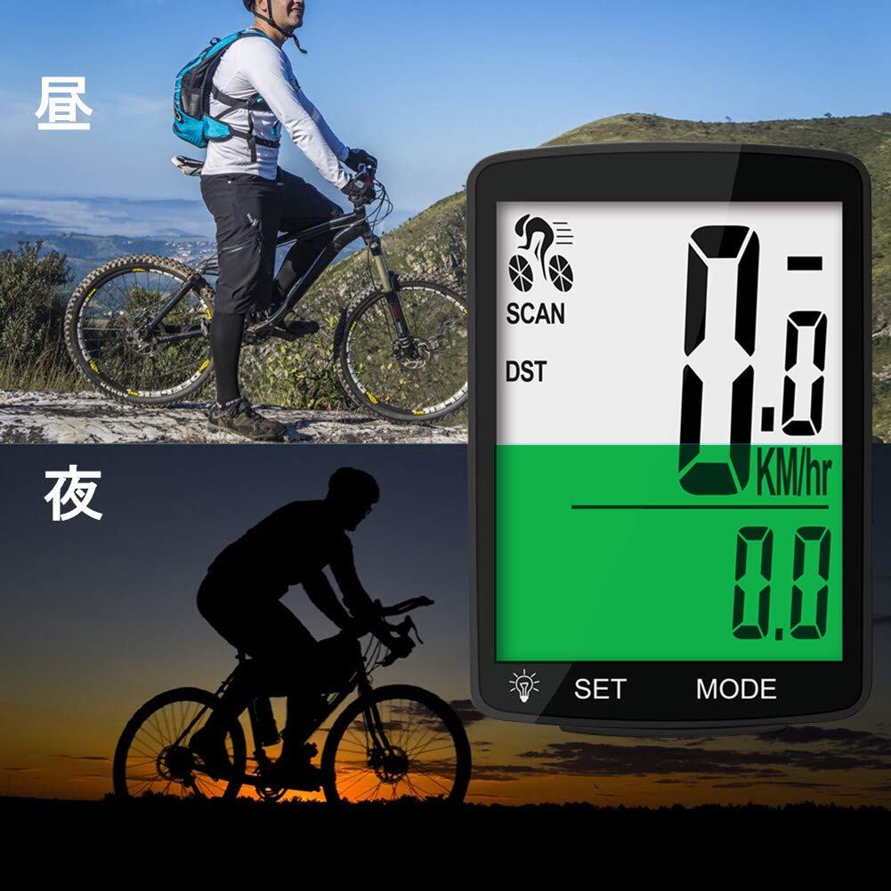 サイクルコンピューター 自転車 ワイヤレス サイコン スピードメーター 大画面表示 防水 バックライト付き 走行距離計 走行時間計 気温 消費カロリー 多機能