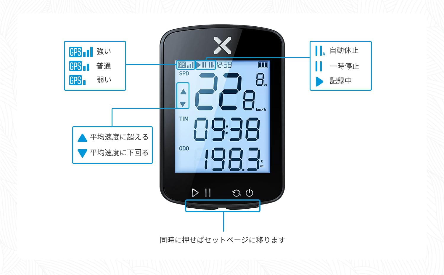画面データ表示: G2 サイクルコンピューターにはデータを表示するための最大 11 画面があり (1 つの画面に 5 つのデータが表示されます)、走行中の主要なリアルタイムデータを包括的に表示できます。