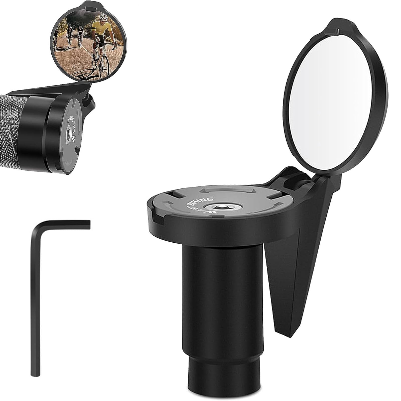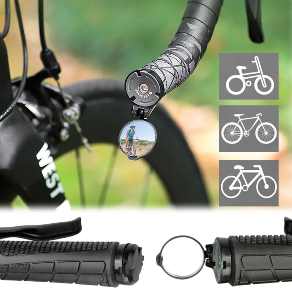 【在庫処分】自転車 ミラー ハンドル バーエンドミラー 小型 広角視野 円形凸面? ハンドル径16-22mm 360°角度調整可能 自転車のハンドルバー 取り付け簡単 レンチ付属 (ブラック) | GIGATERA