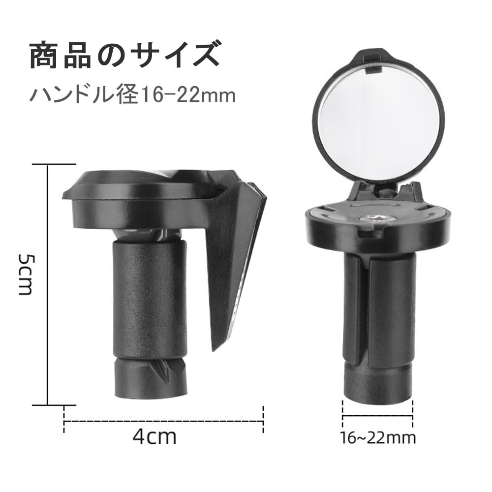 自転車 ミラー ハンドル バーエンドミラー 小型 広角視野 円形凸面? ハンドル径16-22mm 360°角度調整可能 自転車のハンドルバー 取り付け簡単 レンチ付属 (ブラック)