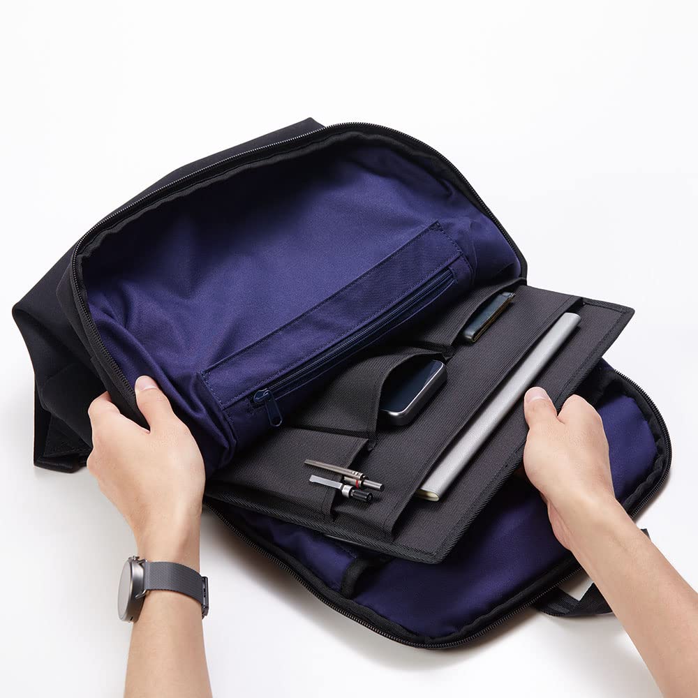 カバンの中でも自立しやすい芯材入りのハード仕様なので、移動中はバッグインバッグに。使用時はカバンから出してワンタッチで開くだけ。いつでもどこでも身の回りの小物が整ったワークデスクになり、スムーズに仕事環境にスイッチ。