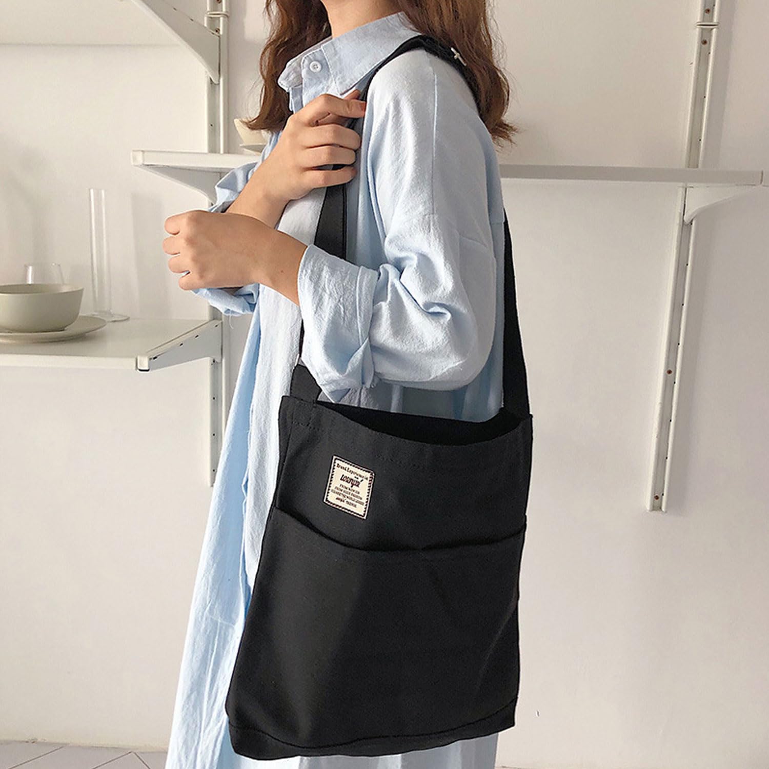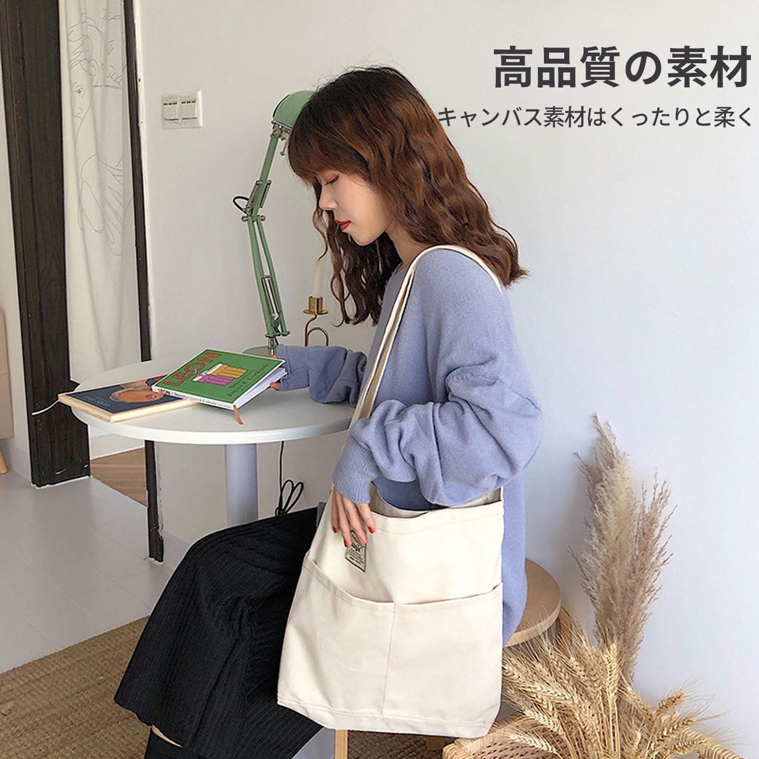 【品質】キャンバス素材、柔らかくてふわふわ、肩にかけやすい、圧迫感なく持ち運べる。