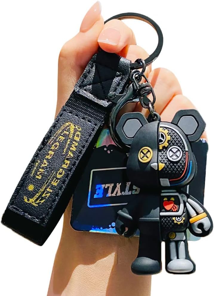 [AIXUAN]男性女性男の子女の子クール半機械ボディ立ちクマキーホルダークリスマスプレゼント動物ペンダントメタルキーホルダー (ブラック)