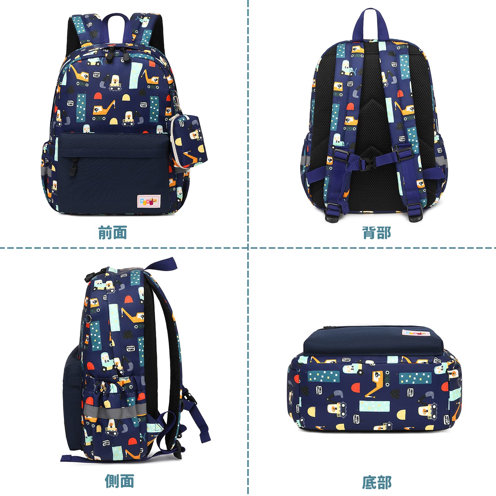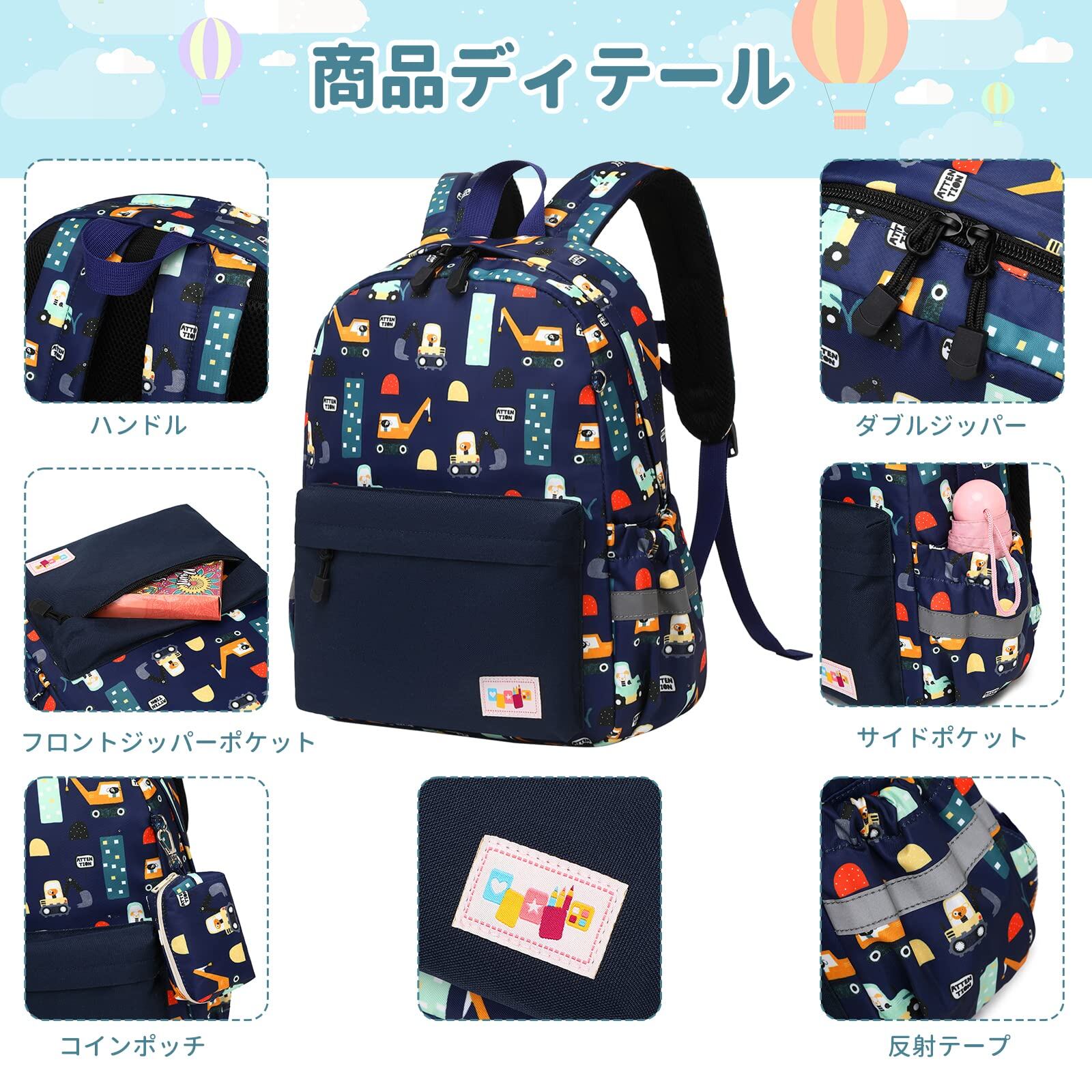 リュックとコインポッチのセットで、子供のお弁当、着替え、宿題、筆箱、絵本、水筒などは収納可、A4サイズの本までも収納できます。