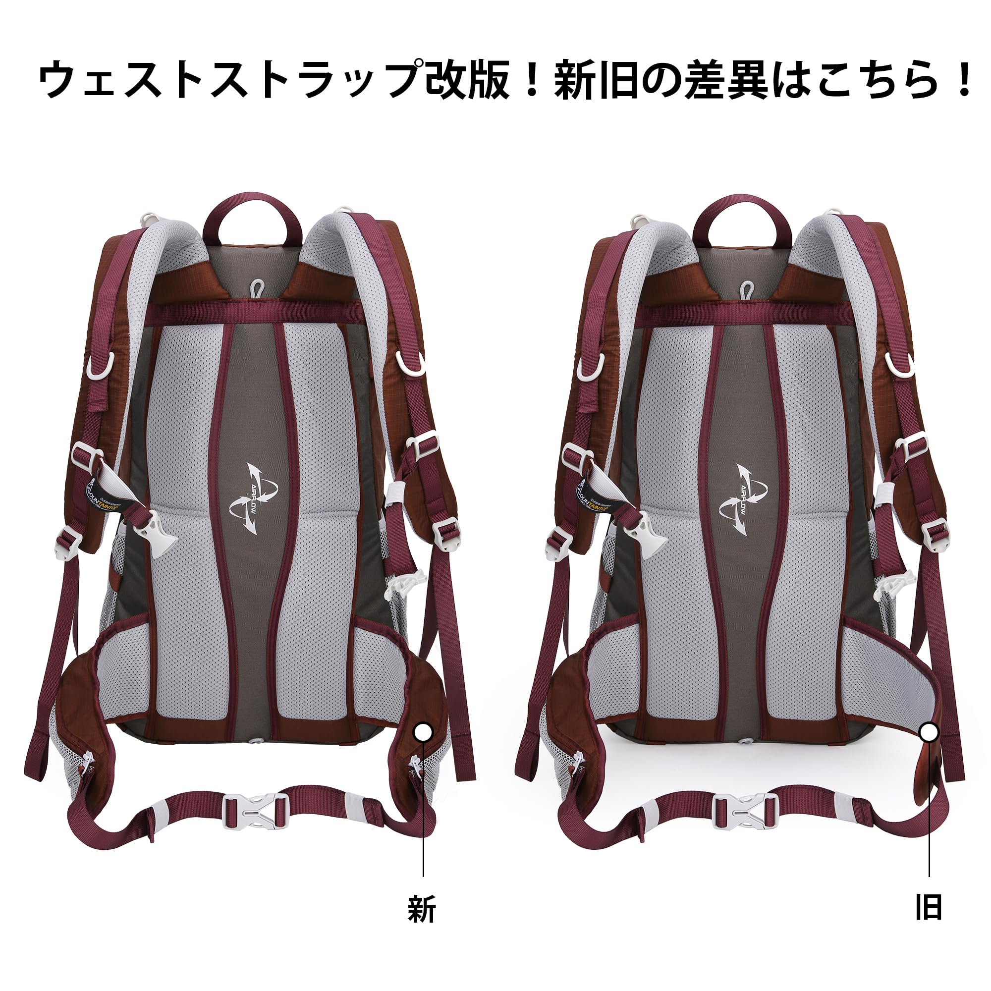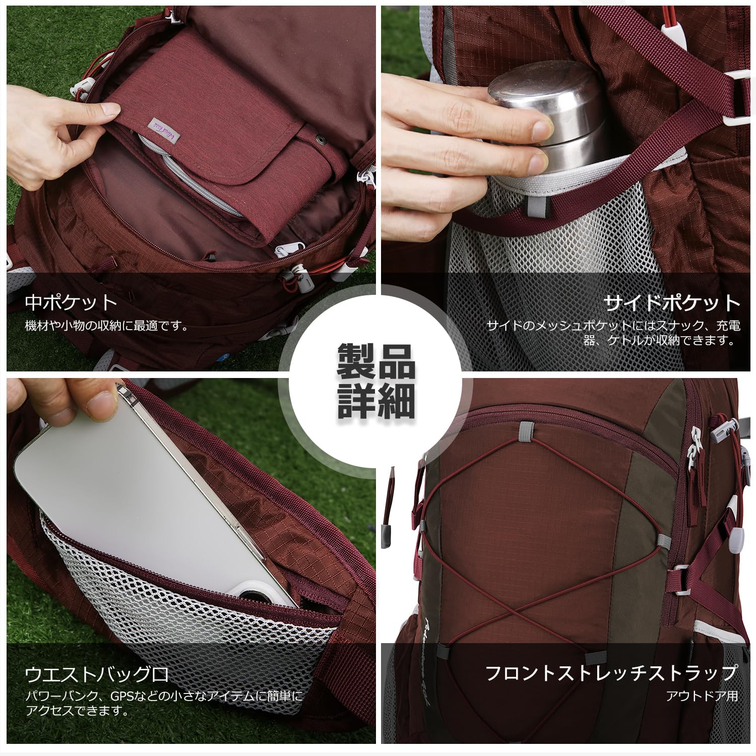 【安心機能】このハイキングザックには緊急チェストストラップホイッスルが装備されており、緊急事態に役立ちます。胸骨とウエストのストラップが肩にかかる重量を分散し、背中にしっかりとフィットします。