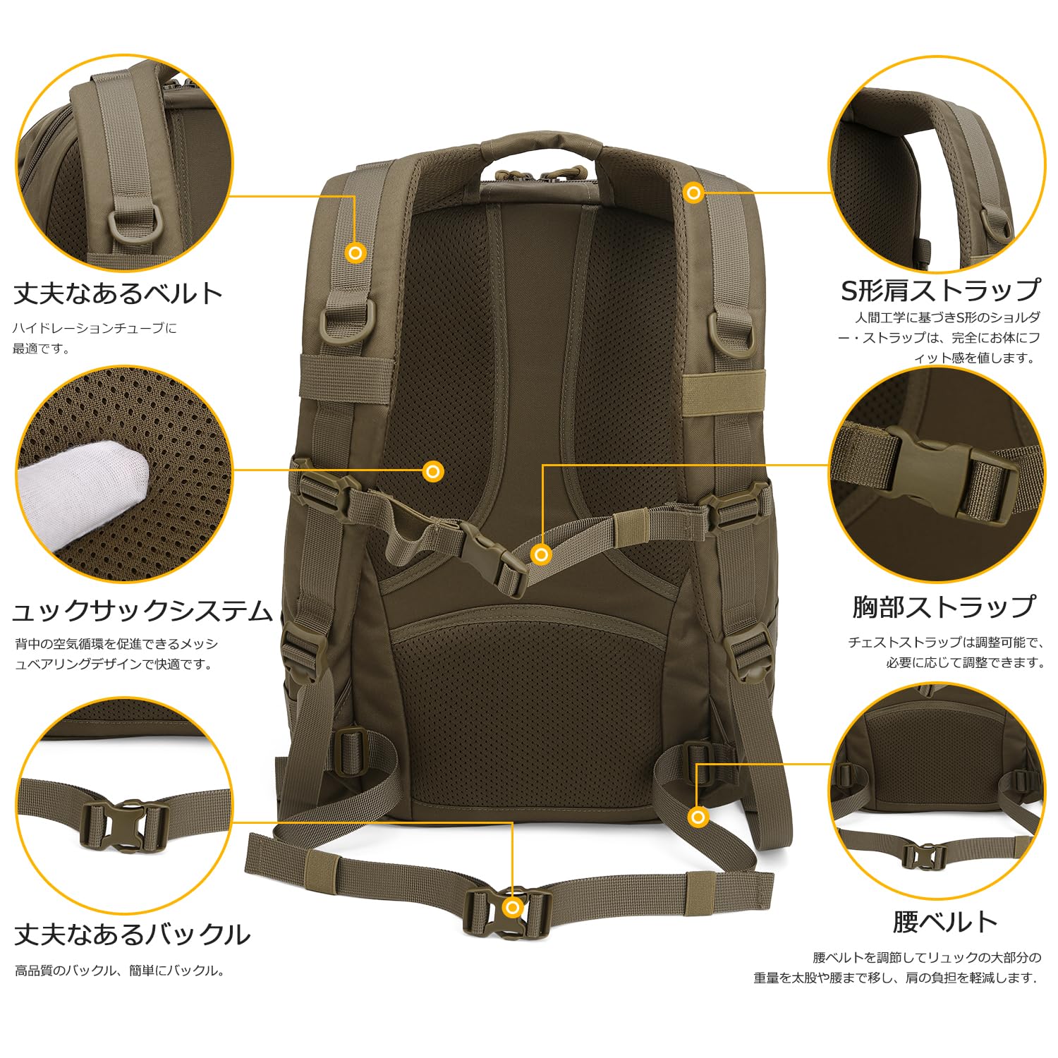 【リュック仕様】容量:25L。長30x高43x幅20cm。このミリタリーバックパックは600D耐水性ポリエステルで作られています。 YKKジッパー。
