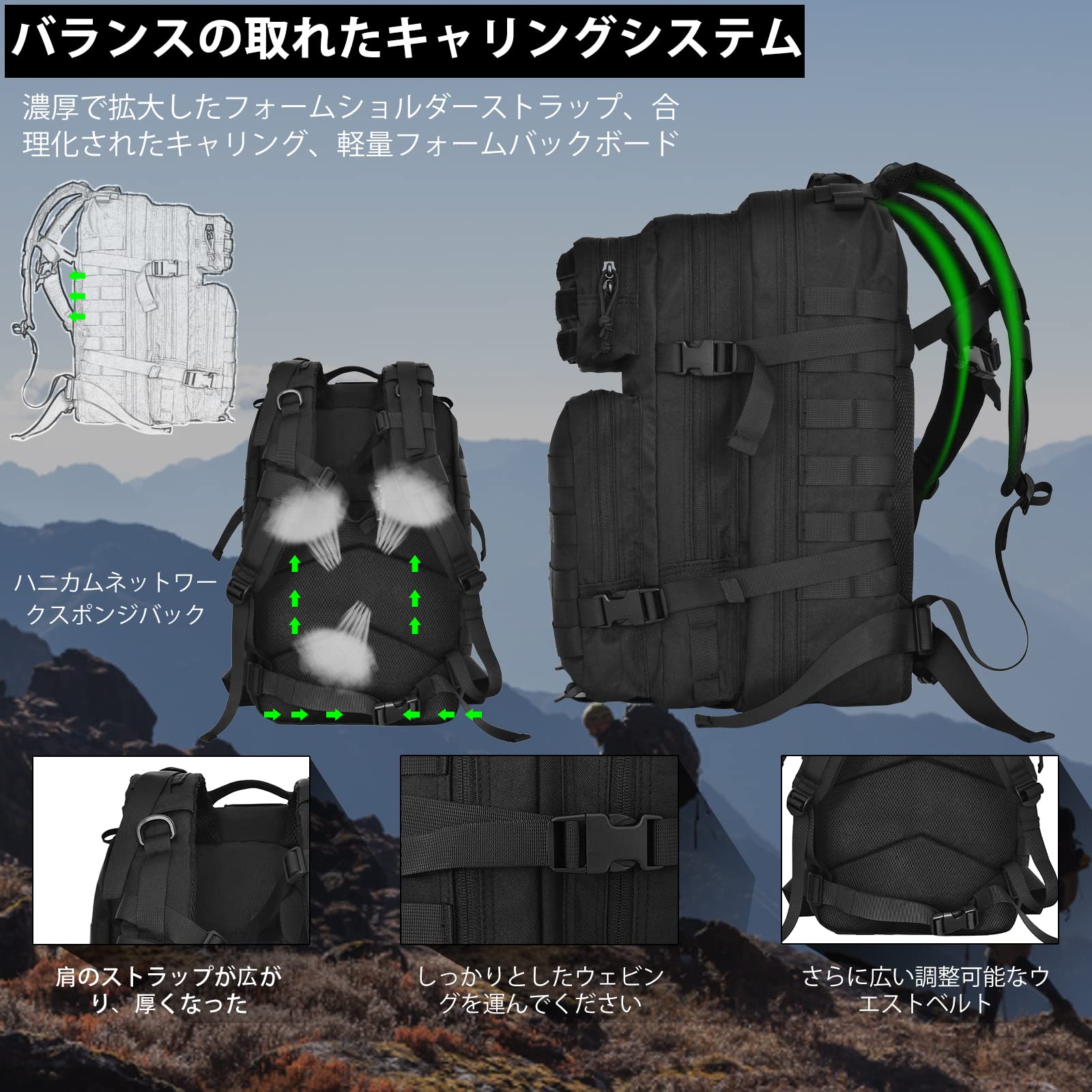 [Negrew] ミリタリー リュック 登山リュック 35L/45L 大容量 防水 耐久性 タクティカル バックパック 釣り用 通勤用 キャンプ アウトドア アーミーアサルトパック 旅行 防災 3日間