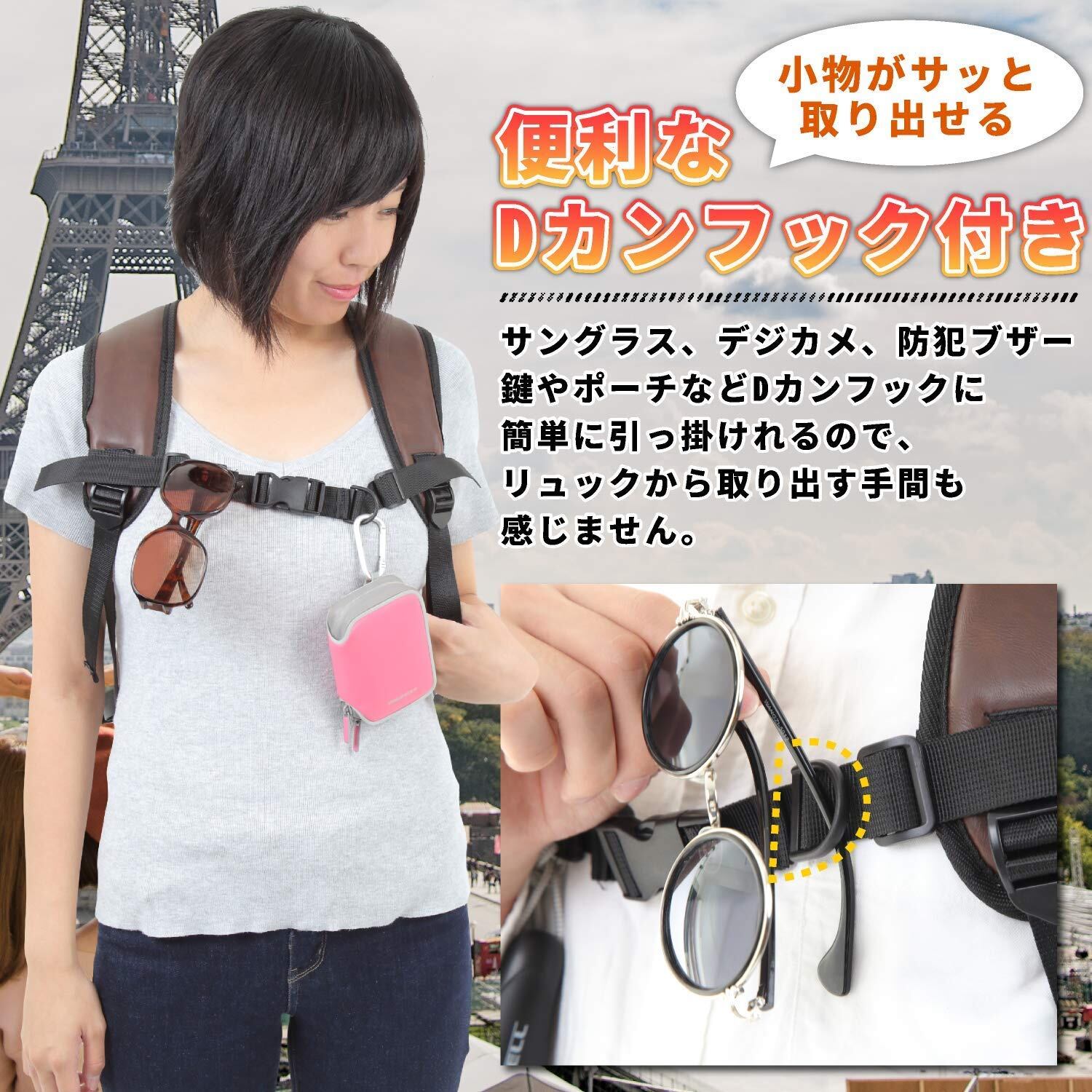 【ずり落ち防止】リュックに取り付けることで、ショルダーベルトが肩からずり落ちるという悩みを解消し、両手を解放できます。【 バランス安定感・本製品を使用すると、よいバランスの安定感を与え、肩と腰の疲れも和らげます重?いリュックがラクに背負える! 】 リュックは荷物がたくさん入るから、ついつい荷物を詰め込みがちになりますよね。いざ背負うと「あ、意外と重い…」なんてこと感じたことありませんか? リュックをピタッと体に密着させて、リュックが身体の一部になったかのように背負うことができるのが、このチェストストラップです!