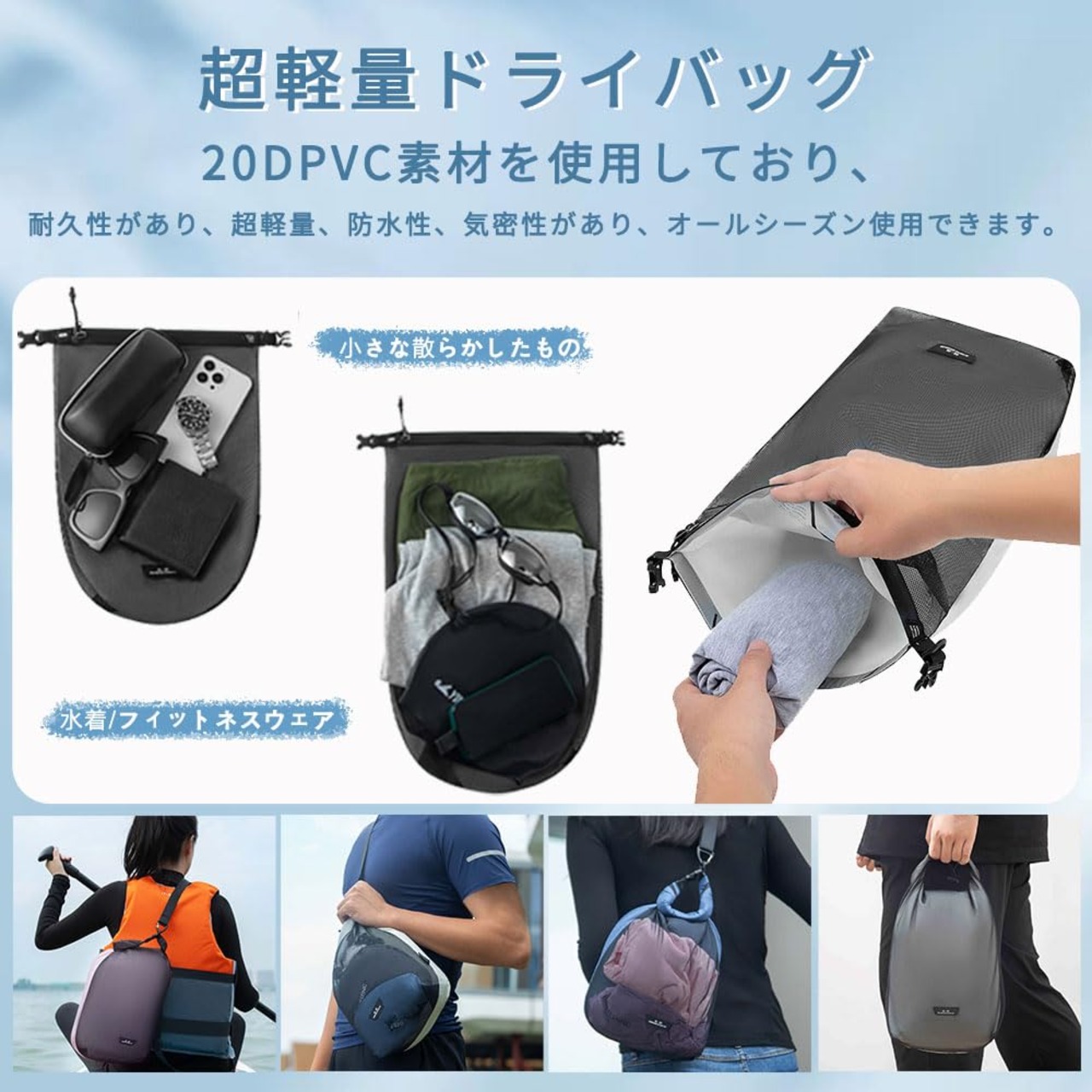 乾湿分離-防水バッグのデザインが新しくなりました. 追加されたメッシュデザインにより、濡れた服と乾いた服をより適切に分離できます. 汚れた服と乾いた服を分けて保管できるため、持ち運びが簡単になります. 防水バッグは手持ちまたはバックパックとして使用できますショルダーストラップ。