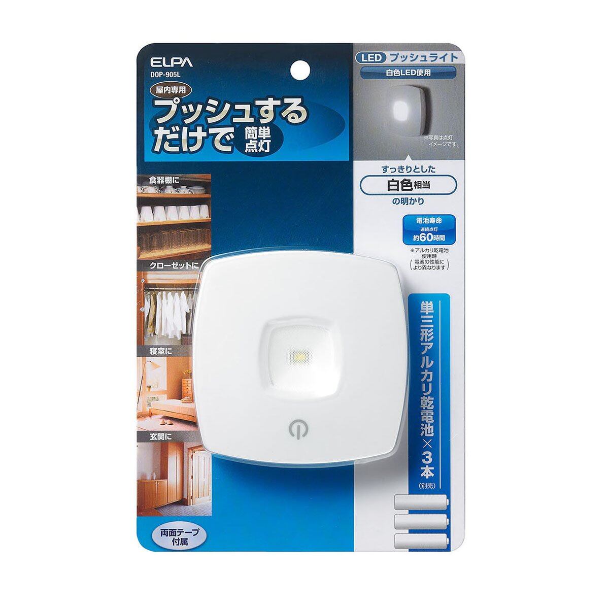 エルパ LEDプッシュライト乾電池式なので場所を選ばない DOP-905L