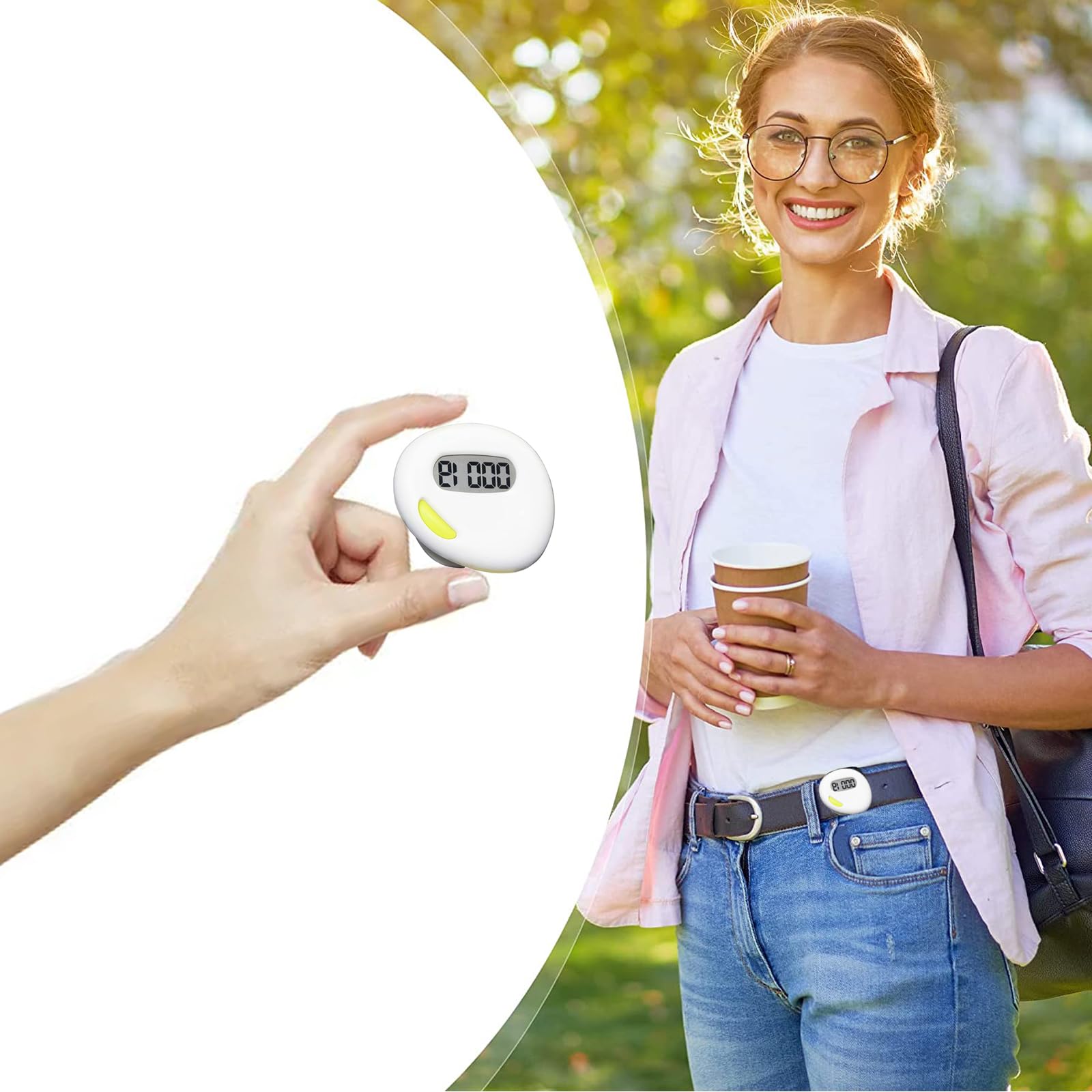 【便利な操作】ズボンのウエストにクリップで留め、地面に対して垂直に使用すると、不正確な歩数計測を避けることができます。歩数計をポケットに入れて持ち歩かないでください。