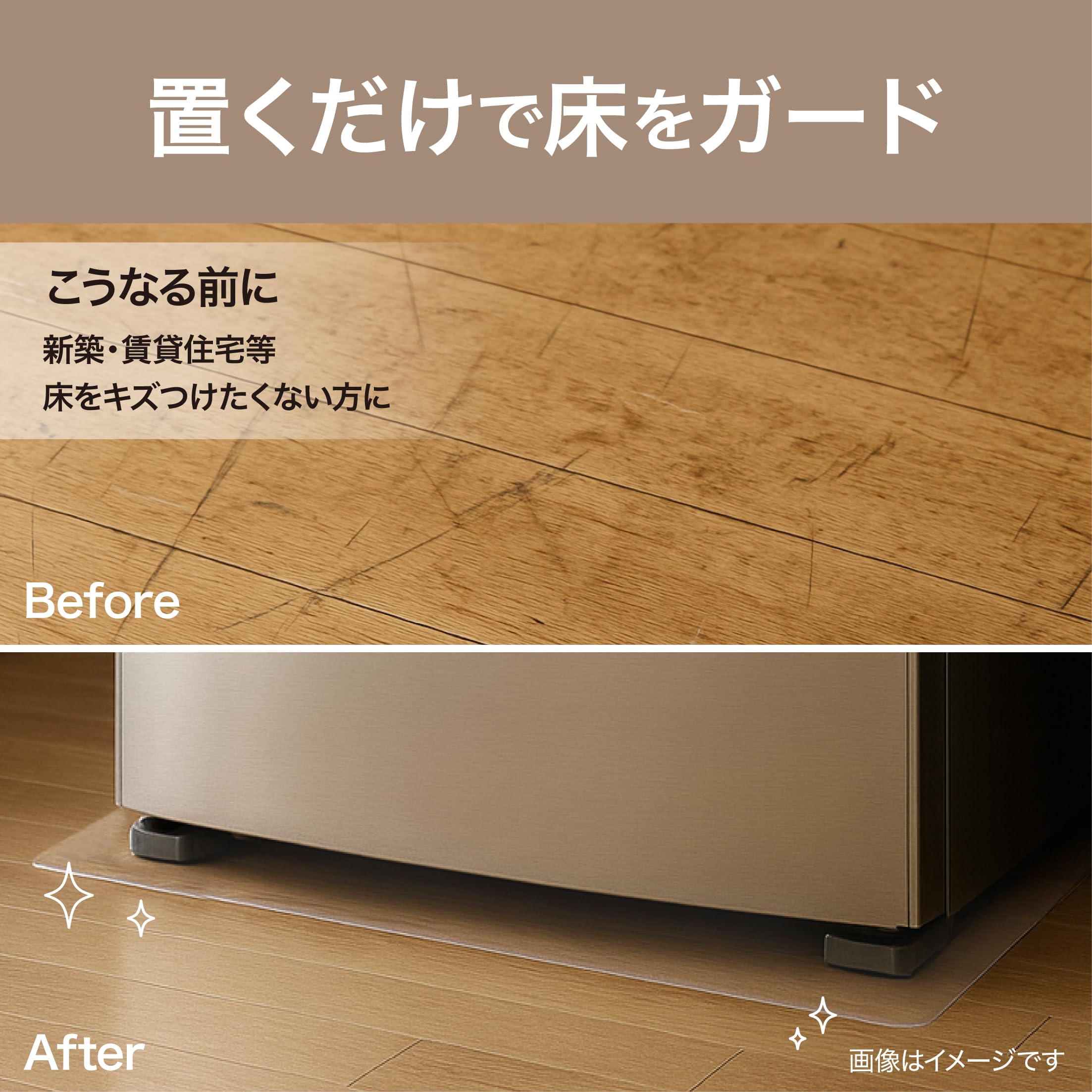 【冷蔵庫の下に敷くだけで床を保護】
