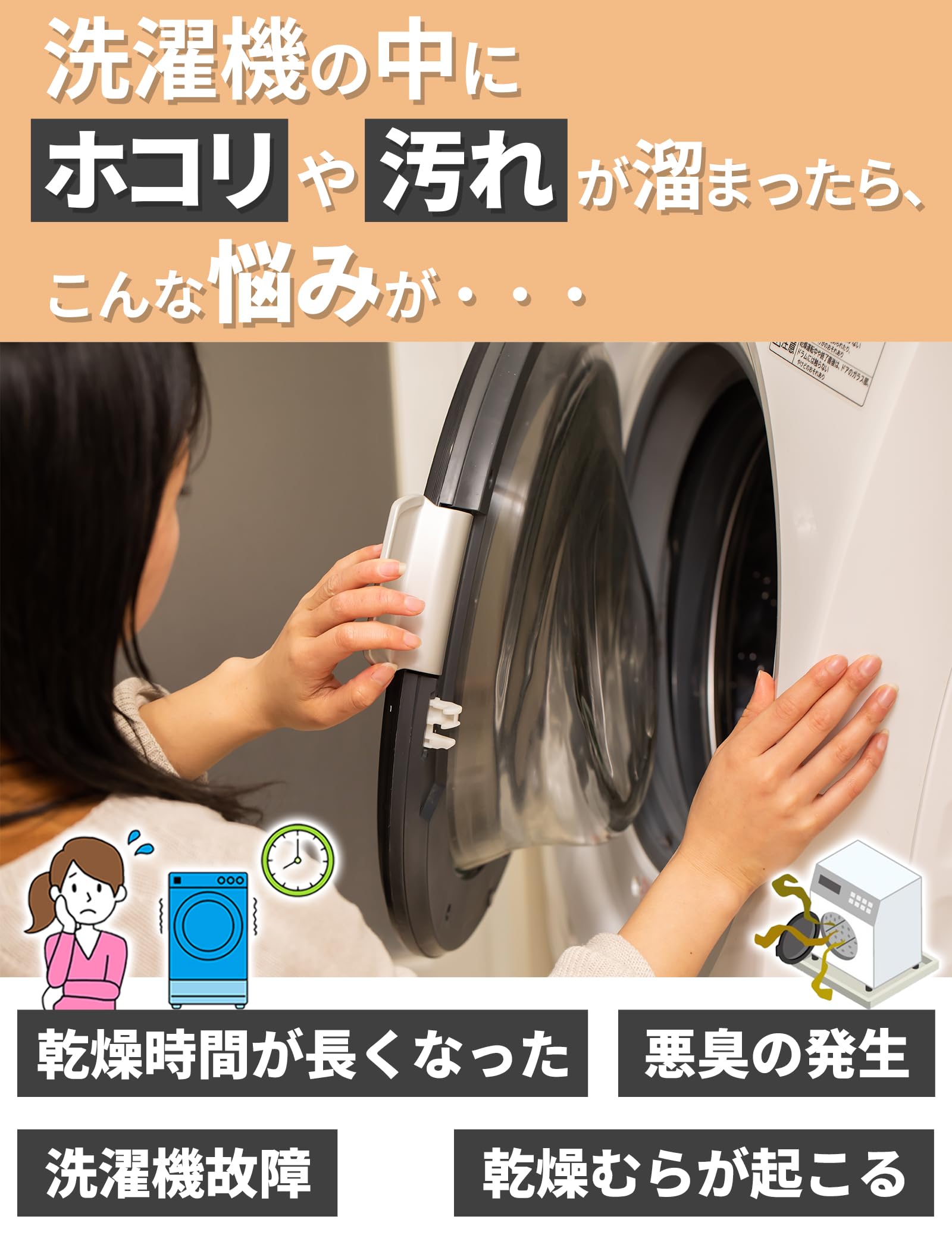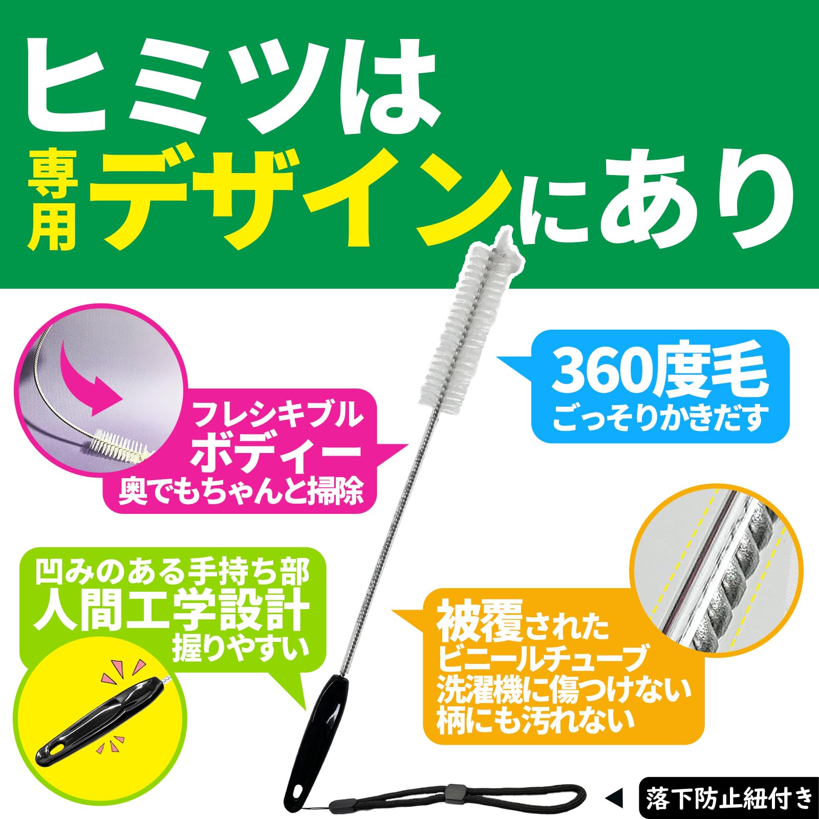 【数量限】【洗浄力1.6倍向上・毛の密度&面積UP】 Larusea(ラルシー) 掃除ブラシ 「パナソニック AXW22R-9DA0の互換品」 Panasonic ドラム式洗濯乾燥機 洗濯槽 クリーナー おそうじブラシ 【適応機種:パナソニック NA-LX・VXシリーズ シャープ(SHARP) ES-Sシリーズにも対応可能】 手の届かない隅まで掃除できる 落下防止紐付き ブラック
