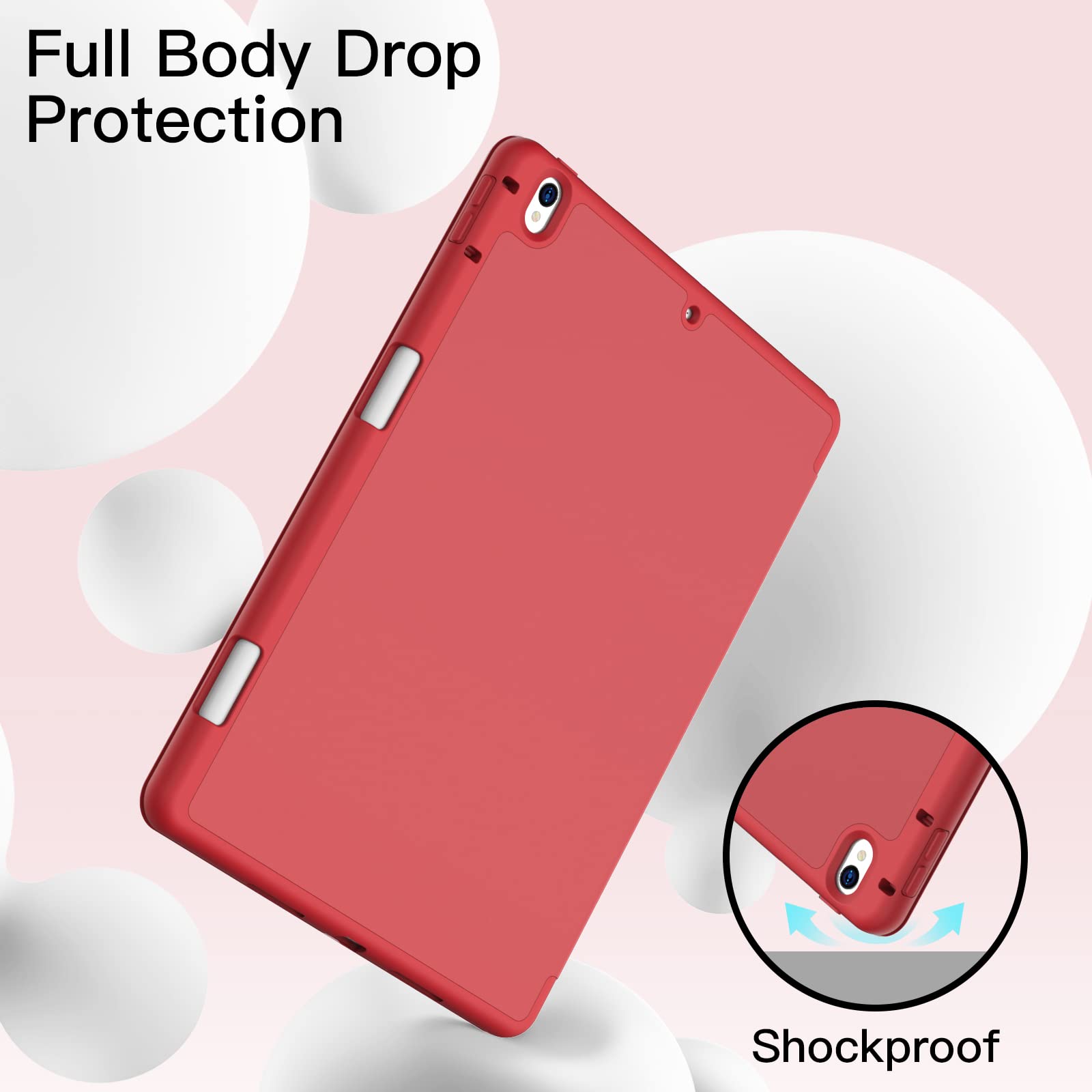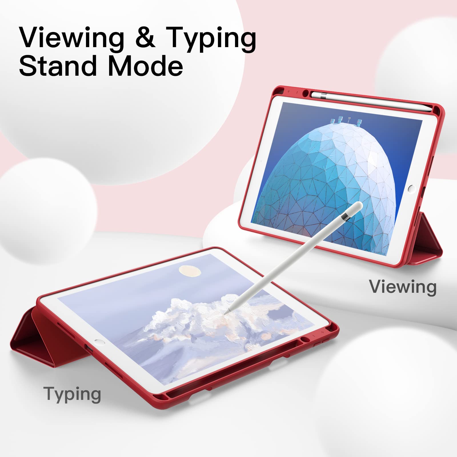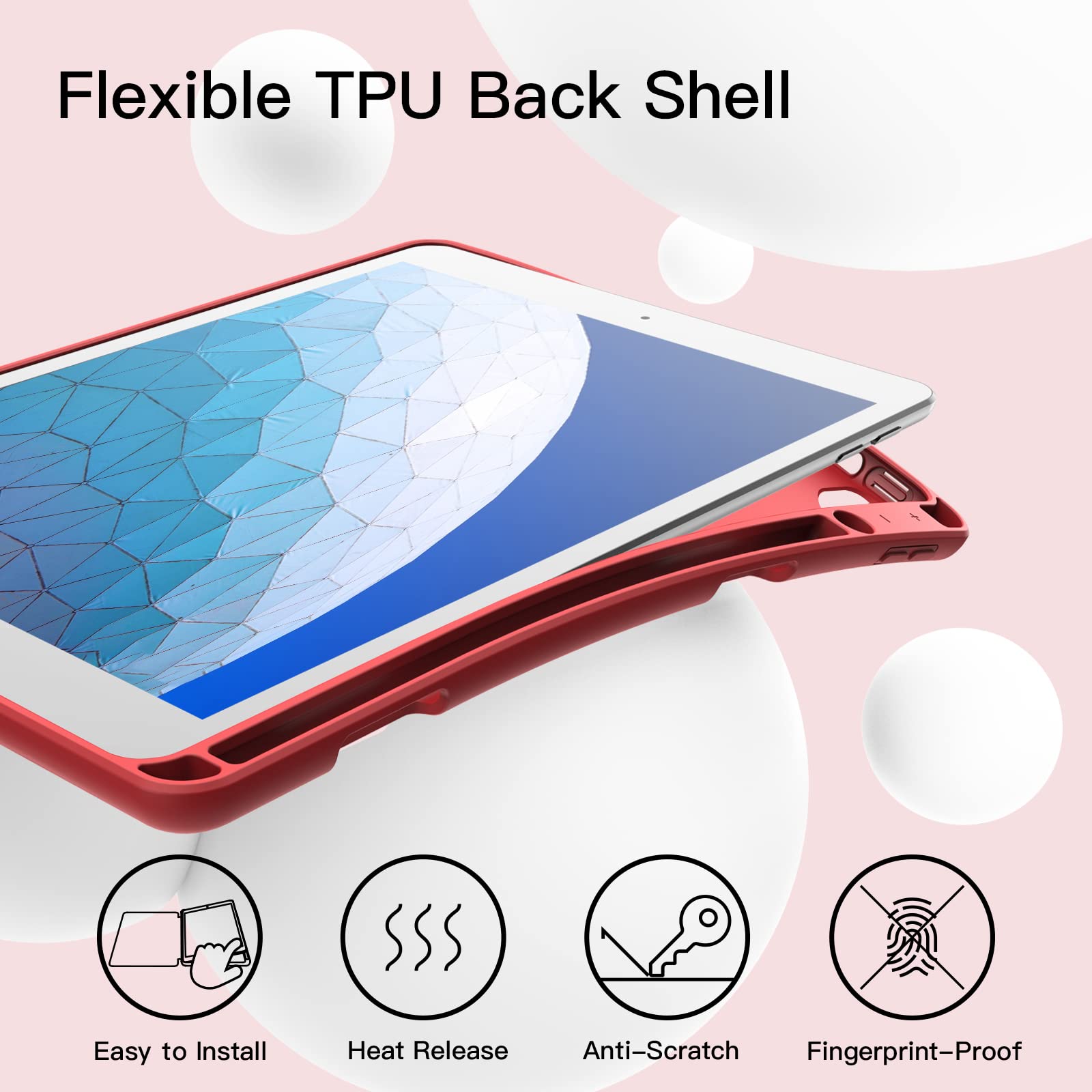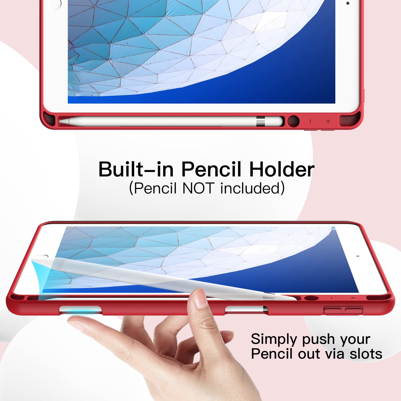 JETech iPad Air 3 (10.5インチ 2019, 第3世代)とiPad Pro 10.5 用Pencilホルダー付き ペンシル ソフトTPUバック スリム保護カバー オートウェイクアップ/スリープ機能付き (レッド)