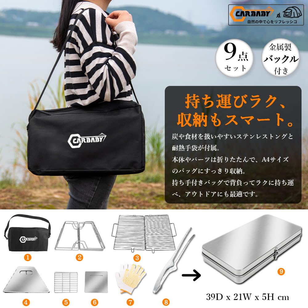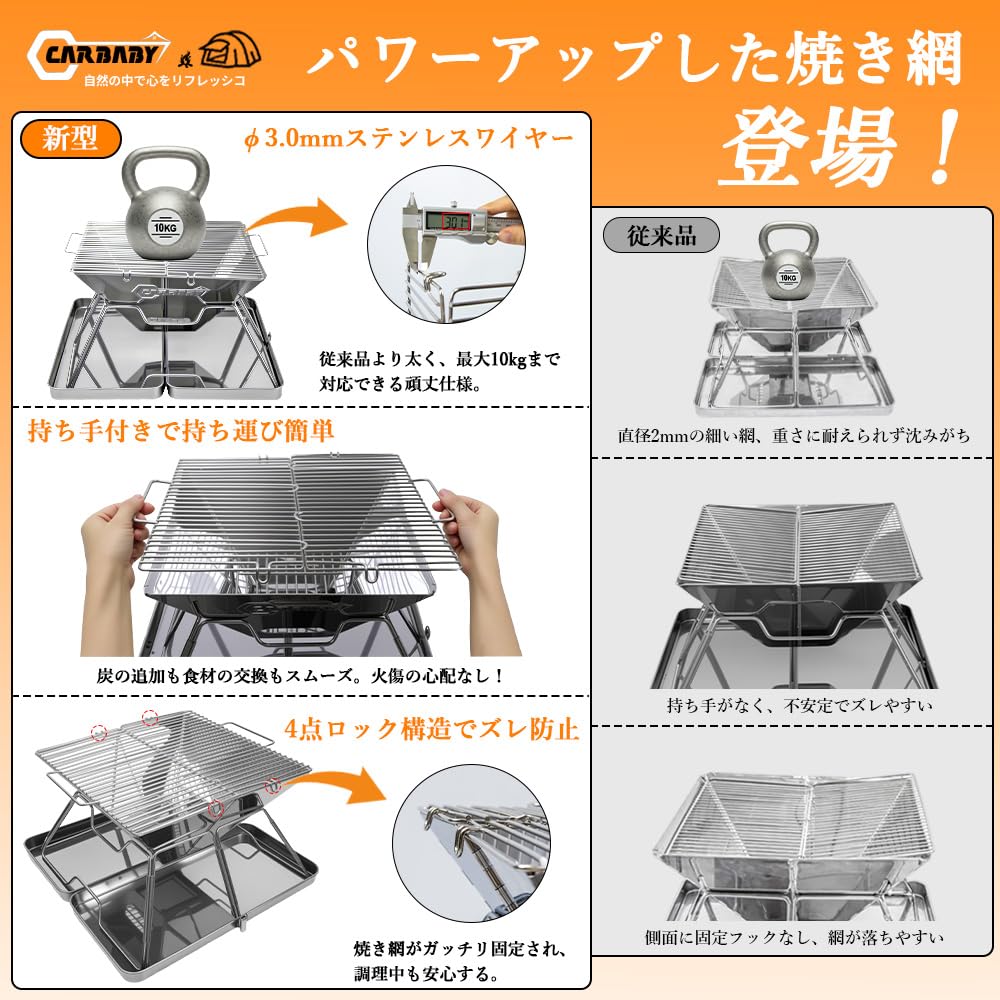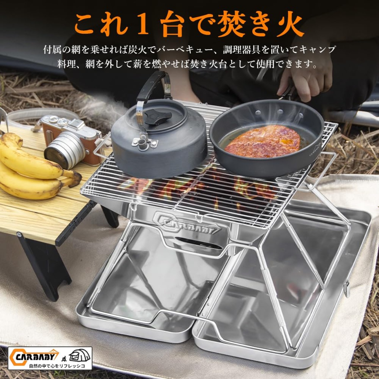 CARBABY バーベキューコンロ 焚き火台 収納ケース付き ステンレス製 2-4人用 アウトドア キャンプ