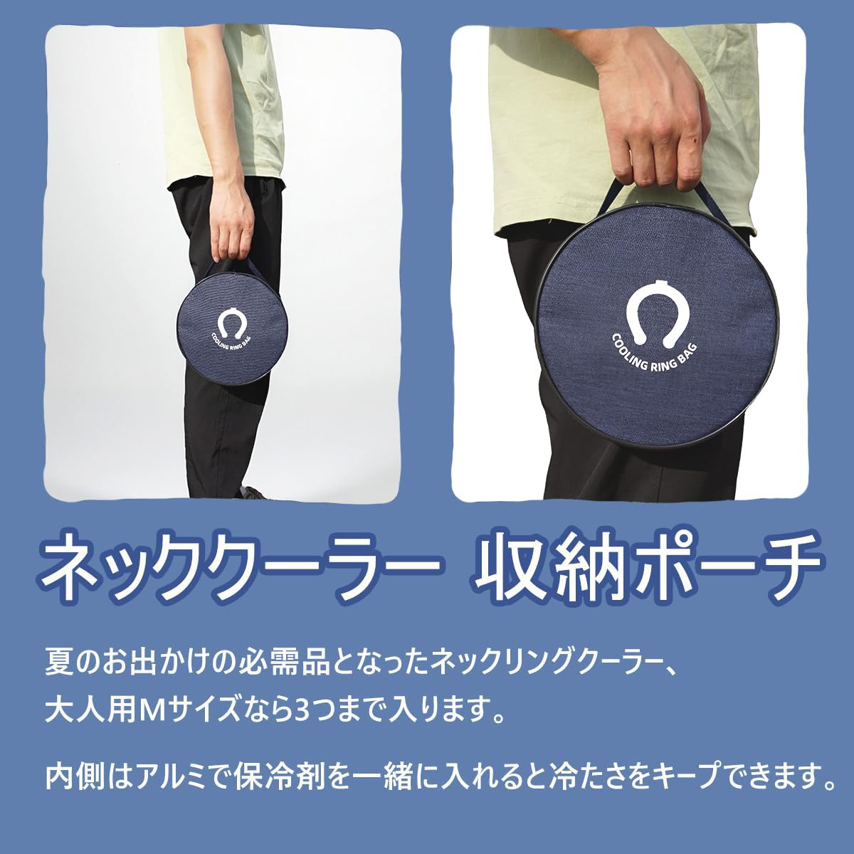 【優れた保冷効果】このクールリングポーチは、内側にアルミニウム素材を採用し、保冷剤(別売り)を使用することでクールリングを長時間冷たいまま保ちます。夏の外出時にぴったりです。