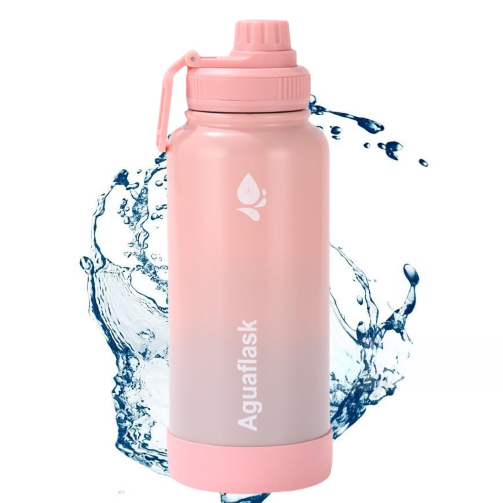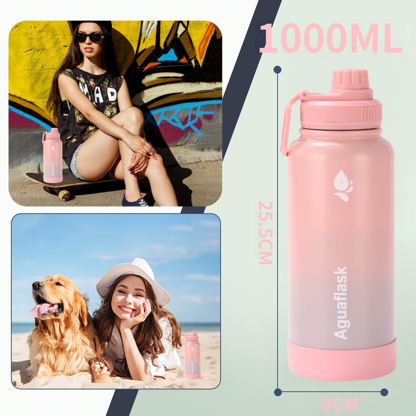 JINLING 魔法瓶 スポーツボトル 真空断熱 保冷保温 大容量 水筒 ステンレス鋼304 直飲み 0.6/1リットル (薄ピンク, 1000ml)