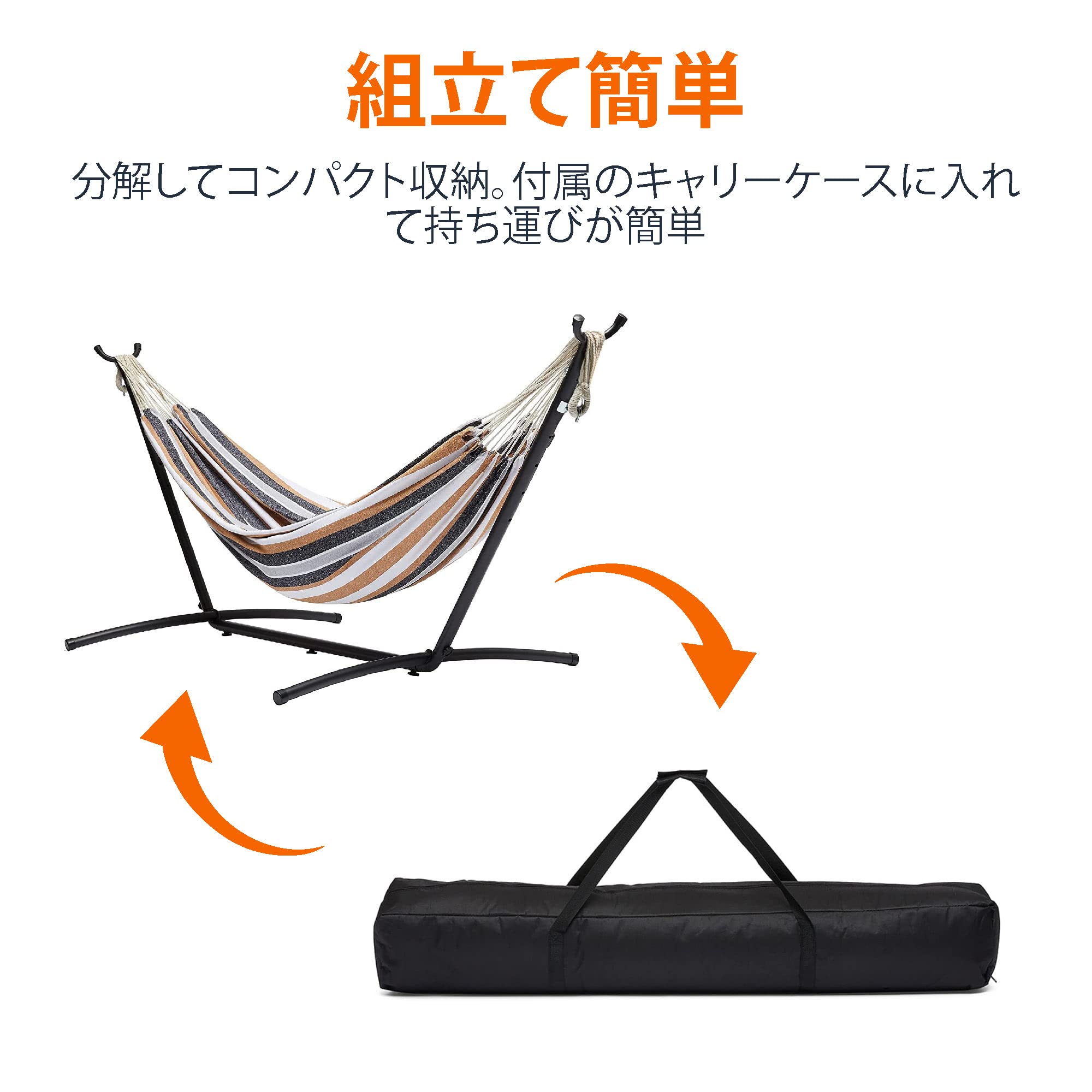ベーシック ダブルハンモック 省スペース スタンド/キャリーケース付き 耐荷重 213kg 300 × 117cm マルチカラー