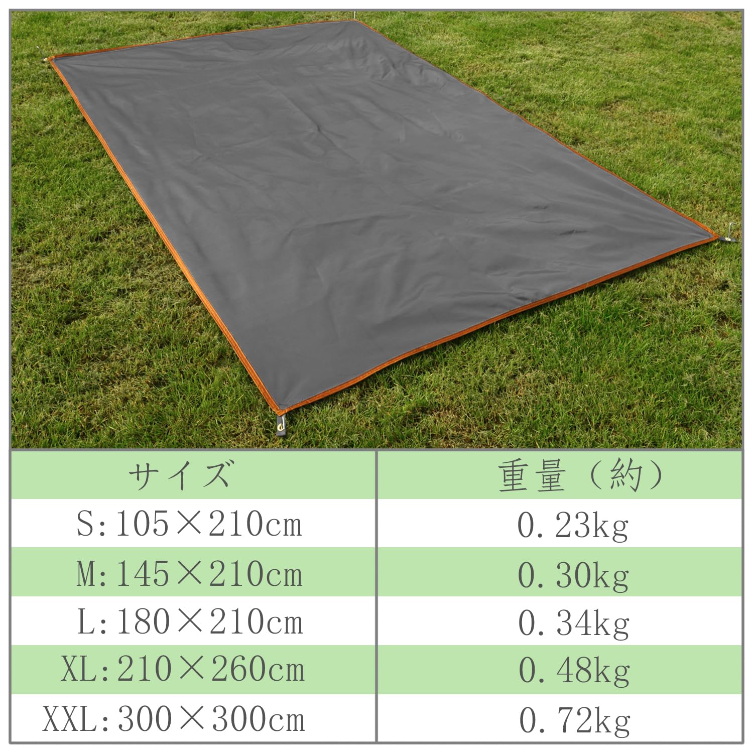 テントシート グランドシート 防水シート 軽量 収納バッグ付き アウトドア キャンプ 登山 ピクニックハイキング (グレー, 105x210cm)