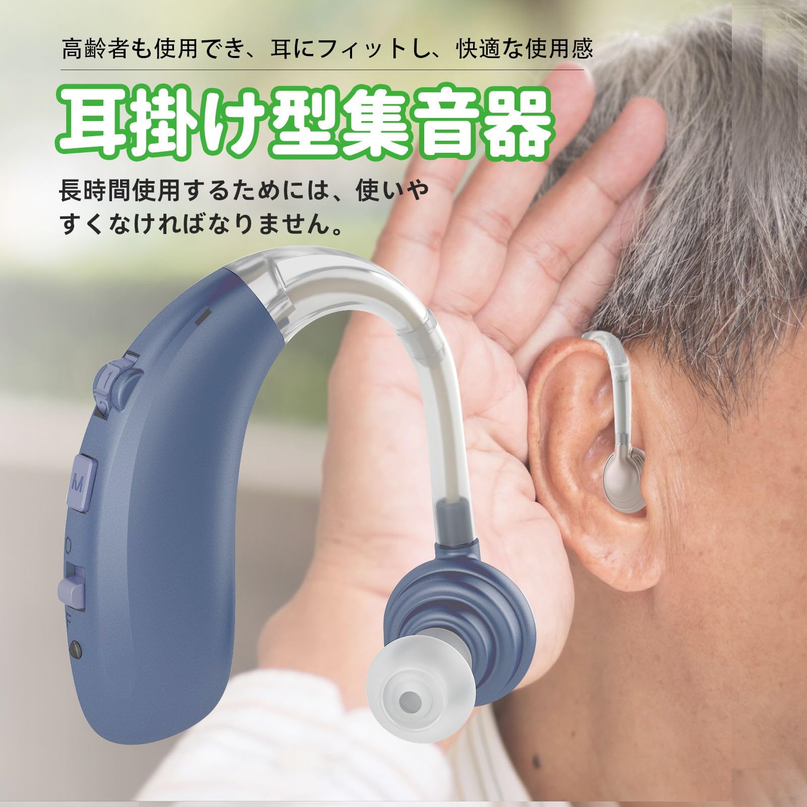 集音器 高齢者向け 音声拡大 雑音抑え 耳掛け式 両耳兼用 敬老の日 母の日 父の日 プレゼント A-360(ブルー)