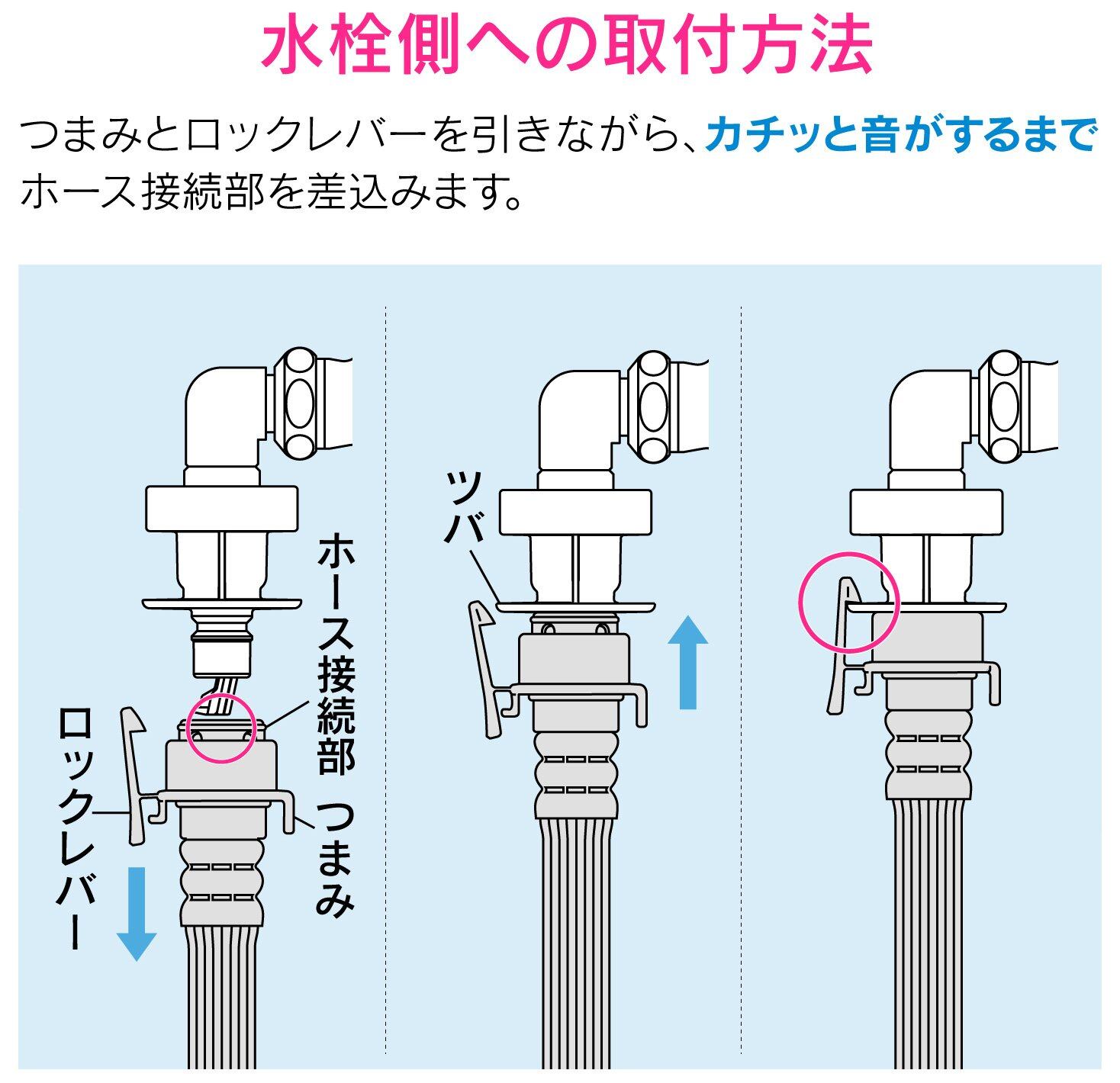 洗濯機用ニップルなどにワンタッチで接続ができます。