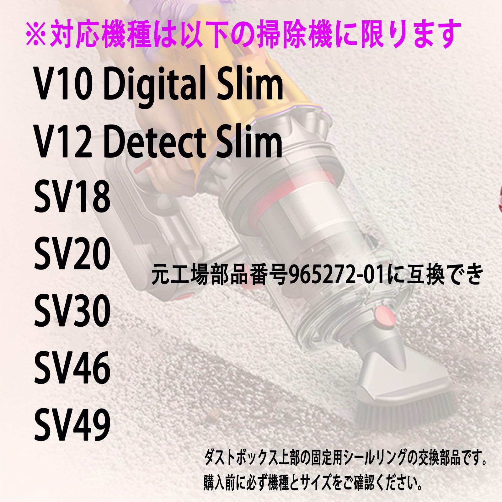 ●【対応機種】:ダイソン掃除機ダストボックス V12 SV18 SV20 Detect Slim/Digital Slim用,元工場部品番号965272-01に互換でき。ダストボックス上部の固定用シールリングの交換部品です。購入前に必ず機種とサイズをご確認ください。