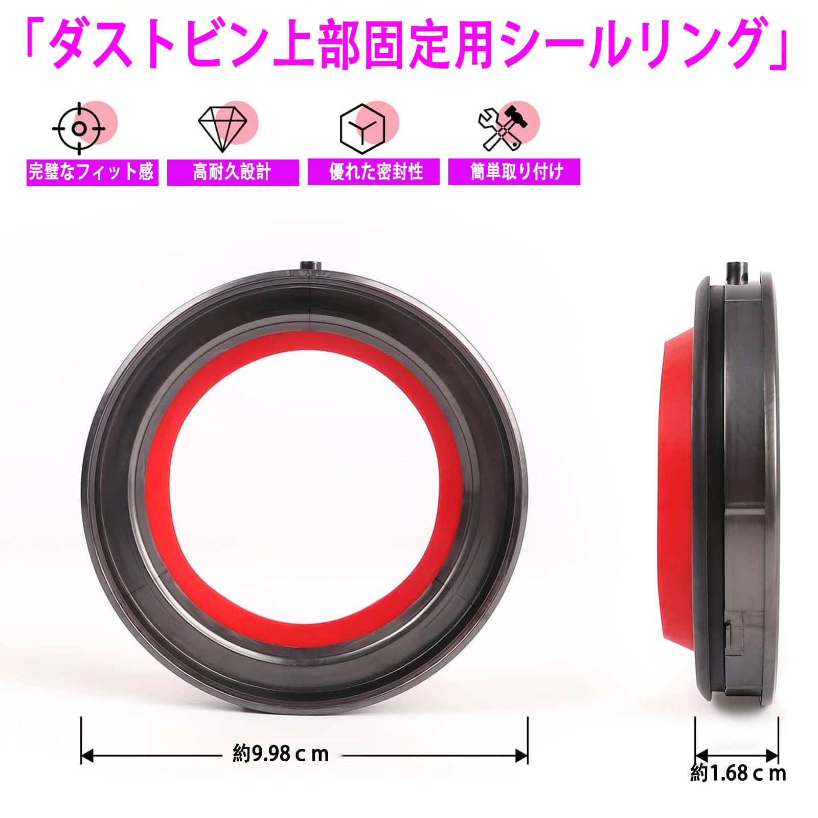 ●【完全フィットの交換パーツ】:ダストボックス上部の固定シールリングが緩んで密封性に影響が出ている場合や、破損・紛失により固定できない場合に最適な交換部品です。オリジナルシールリングと同一サイズ設計のため、問題なく交換可能。掃除機の効率的な濾過・集塵性能を維持し、機器の性能と寿命を向上させます。