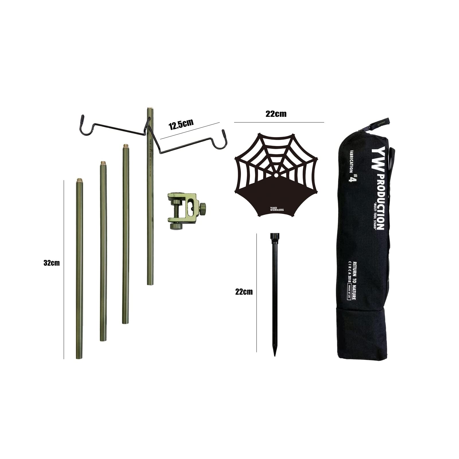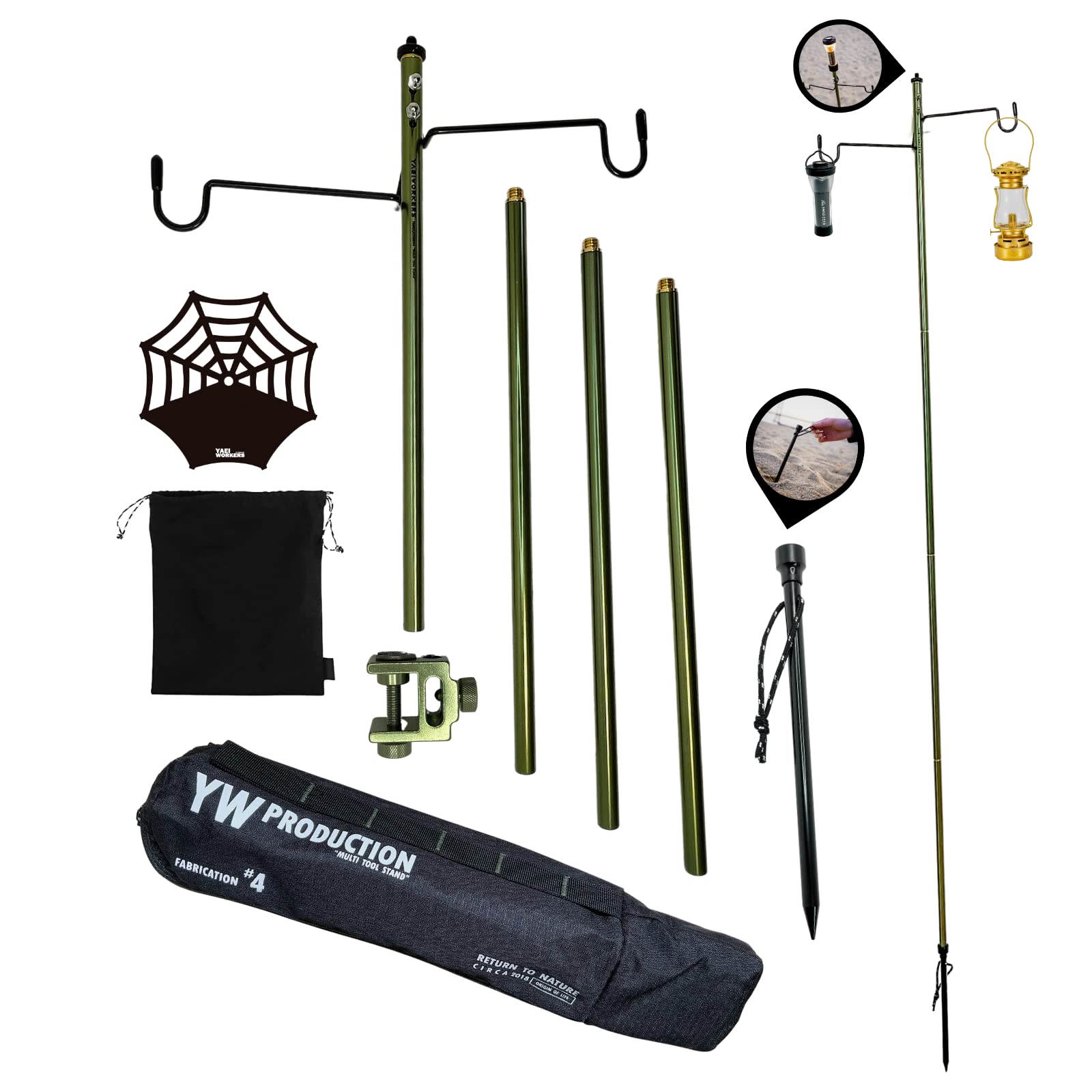 【新着】(ヤエイワーカーズ) ランタンスタンド ランタンポール 7075高強度アルミ製 コンパクト 軽量 クランプ式・打ち込み式両用 ゴールドグリーン色