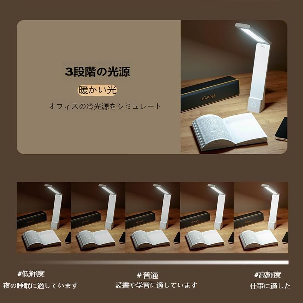 【コスパ最強】 ブルーライトカット&フリッカーフリー 4500mAh LED 学習ライト デスクライト- 目保護 折りたたみ 充電式 3色温度調節 読書/ベッドサイド用 シロイ