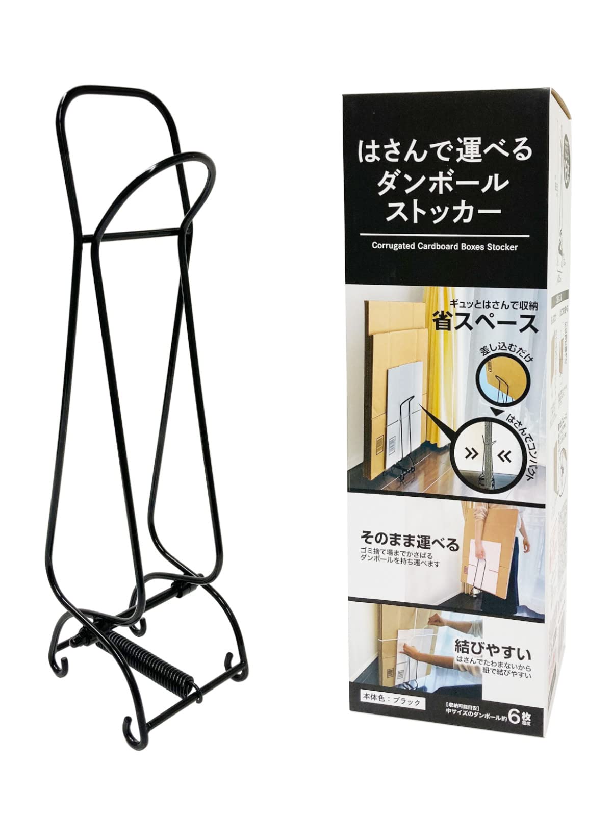 ケミカルジャパン ダンボールストッカー ブラック 横12cm 縦38.5cm 奥行10.5㎝ 挟んで 運べる 結びやすい 省スペース 軽量 組み立て不要 段ボール収納