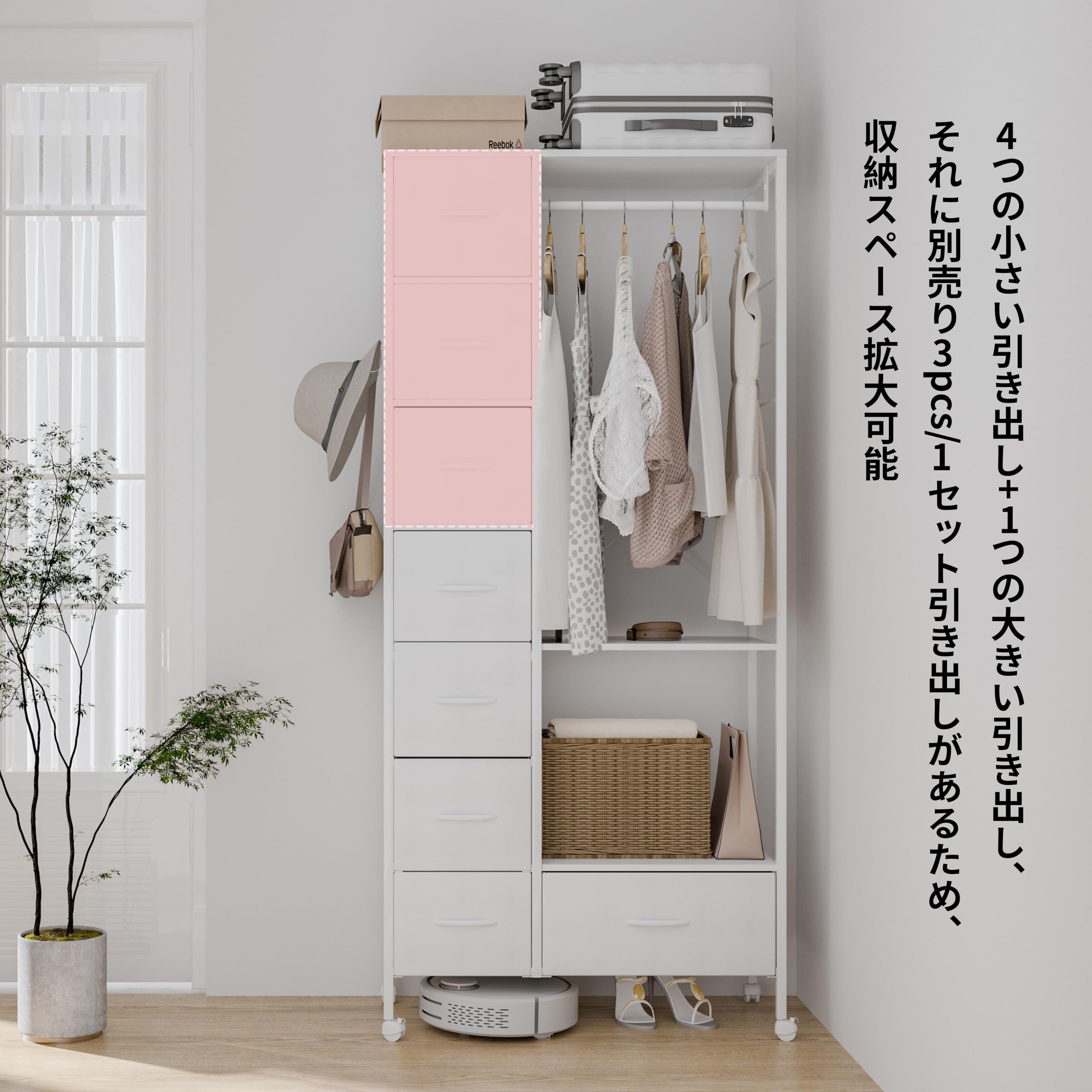 この布製の収納引き出しは、簡単に設置できるため、忙しい生活を送る方に最適です。たった2つのステップで設置を完了できるので、手間をかけずに引き出し付きのクローゼットを手に入れることができます。 この引き出しは、非織布素材で作られており、防水性と防湿性があります。さらに、耐傷性と耐久性があるため、長期間にわたりご使用いただけます。引き出しをスムーズに引き出すことができ、取り出しやすさが特長です。 ボトムプレートにハンガーラックとフレームを組み合わせたデザインは、収納後も場所をとらずにすっきりと収納できます。小さく見えるこの引き出しには、意外とたくさんの物を収納できるため、タンスなどの収納場所が足りない方におすすめです。1つの引き出しには10枚のTシャツや5本のズボンを収納できるため、衣類収納に便利です。 さらに、この引き出しは、同じリンクで販売されている多機能衣帽掛けとも協調することができます。衣帽掛けの左側の仕切り板に3台の引き出しを設置すると、密閉収納スペースに変身し、スペースを有効活用できます。洋服や衣類の収納に困っている方には、このアイテムが最適です。 簡単な設置方法と高い機能性を備えたこの引き出しは、おしゃれで大容量な洋服収納アイテムです。省スペースで収納できるため、どんな部屋にも調和するデザインです。忙しい毎日でも簡単に洋服や衣類をきれいに収納したい方におすすめの商品です。