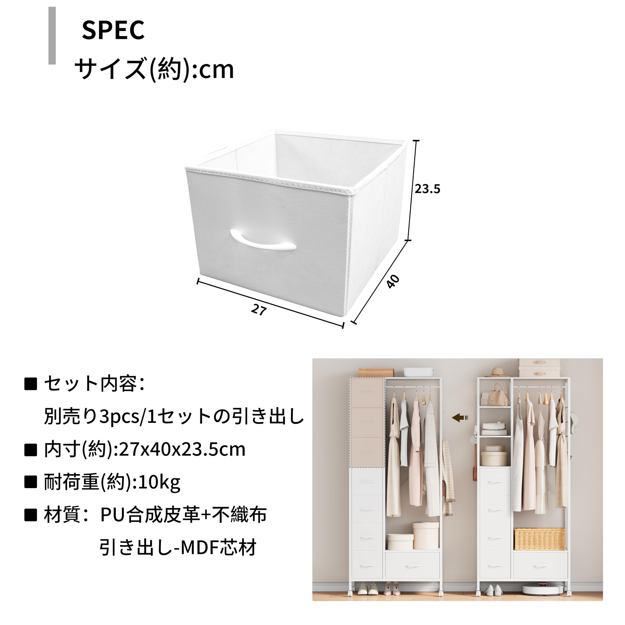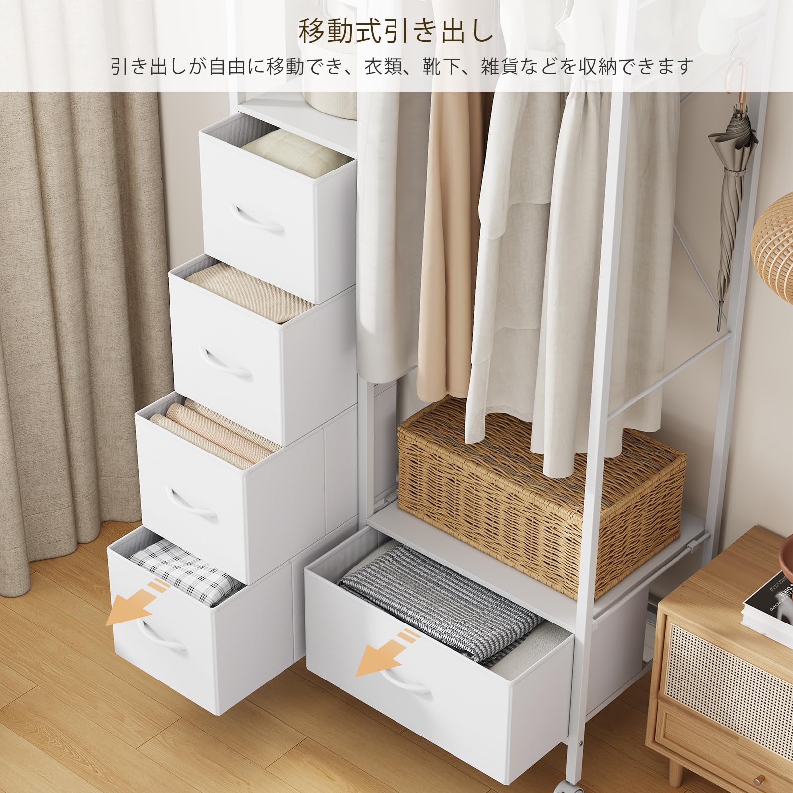 LunarLight ハンガーラック ワードローブ と組み合わせ別売の収納ボックス 布製引き出し 3点セット 洋服収納 衣類収納 (純白色, 3D)