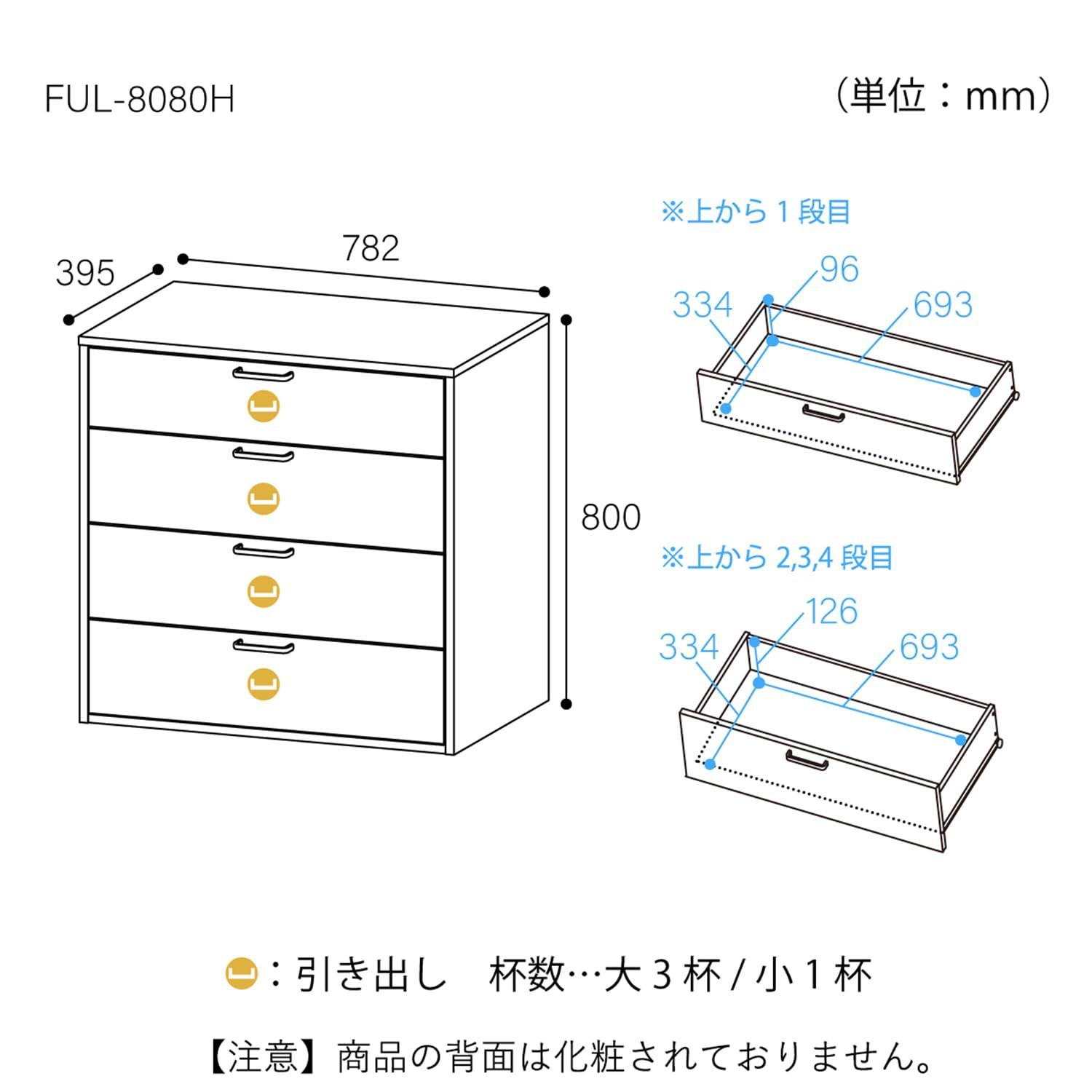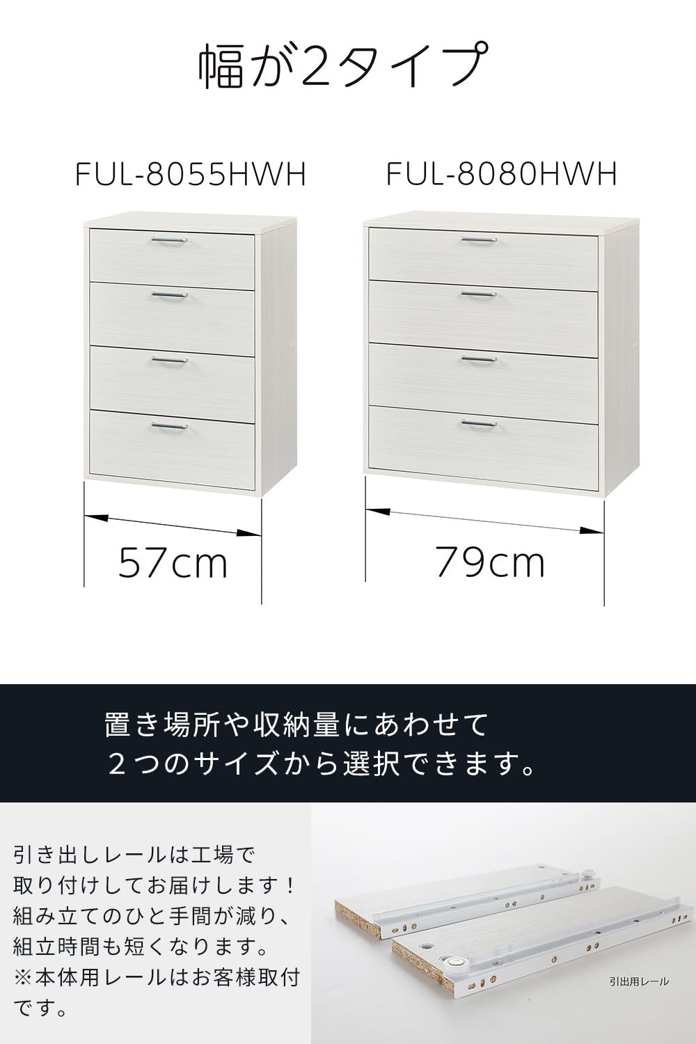 FUL-8080H WHはベーシックな機能のワイドな4段のタンス・チェスト。