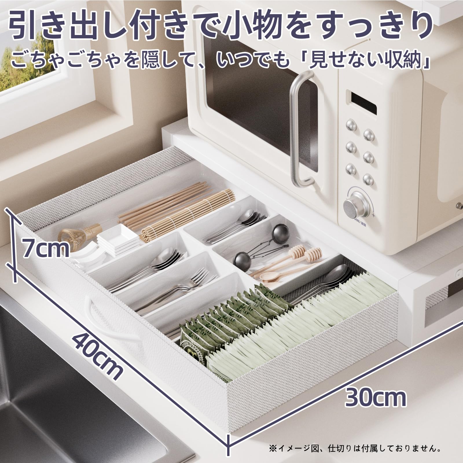 【在庫処分】レンジラック 卓上 引き出し付き 電子レンジラック 冷蔵庫上収納 キッチンラック 幅44cm×奥行30cm×高さ40cm 省スペース 耐荷重40kg イロドリモク (ホワイト) | GIGATERA