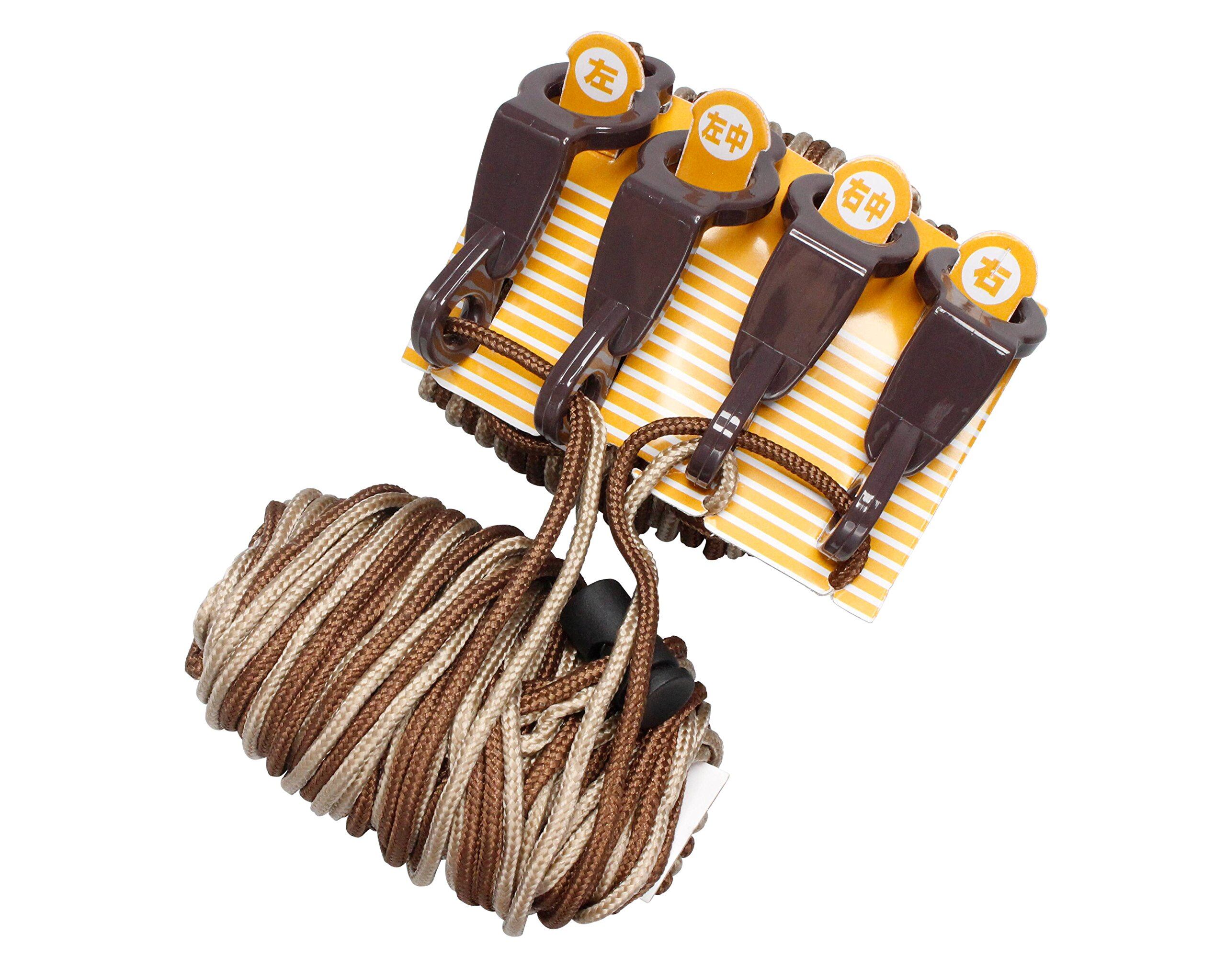 ヒモ4本で大きなすだれでもきれいに巻き上げできる。色々な桟の形に対応。
