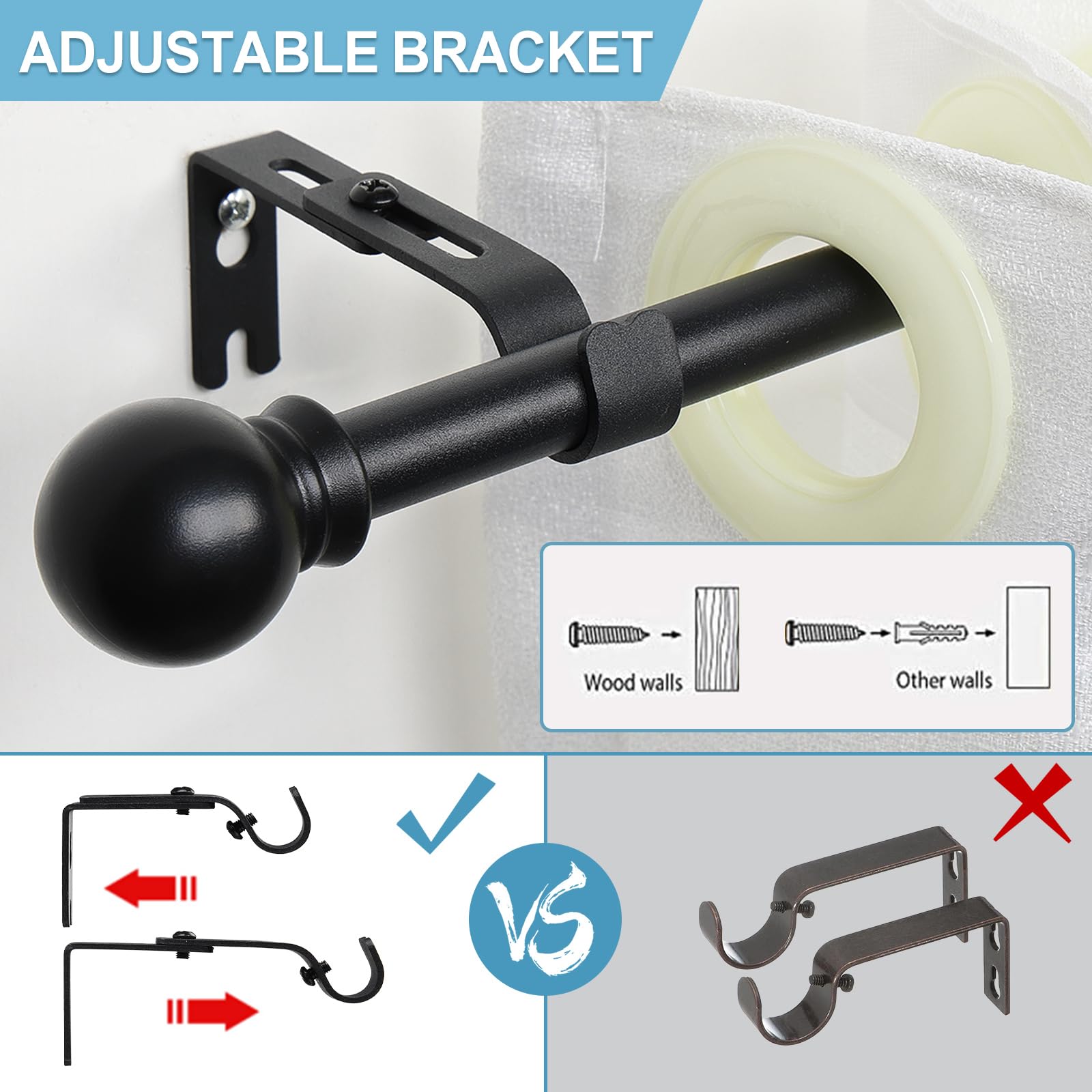 さまざまな環境に適しています:これらのカーテンバーは、寝室、リビング、キッチン、屋外テラスなど、さまざまな環境に適しています。スライドガラスドア、農舎の窓、カフェのカーテンにも適用されます。