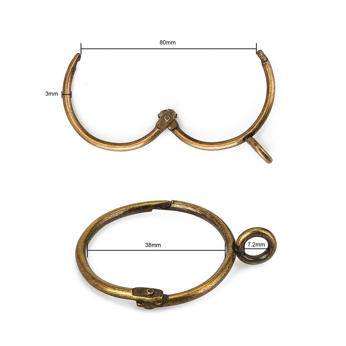 シャワーカーテンリング スライドリング開口設計 内径38mm 20個入り アンティーク風 ブロンズカラー カフェカーテンなどに