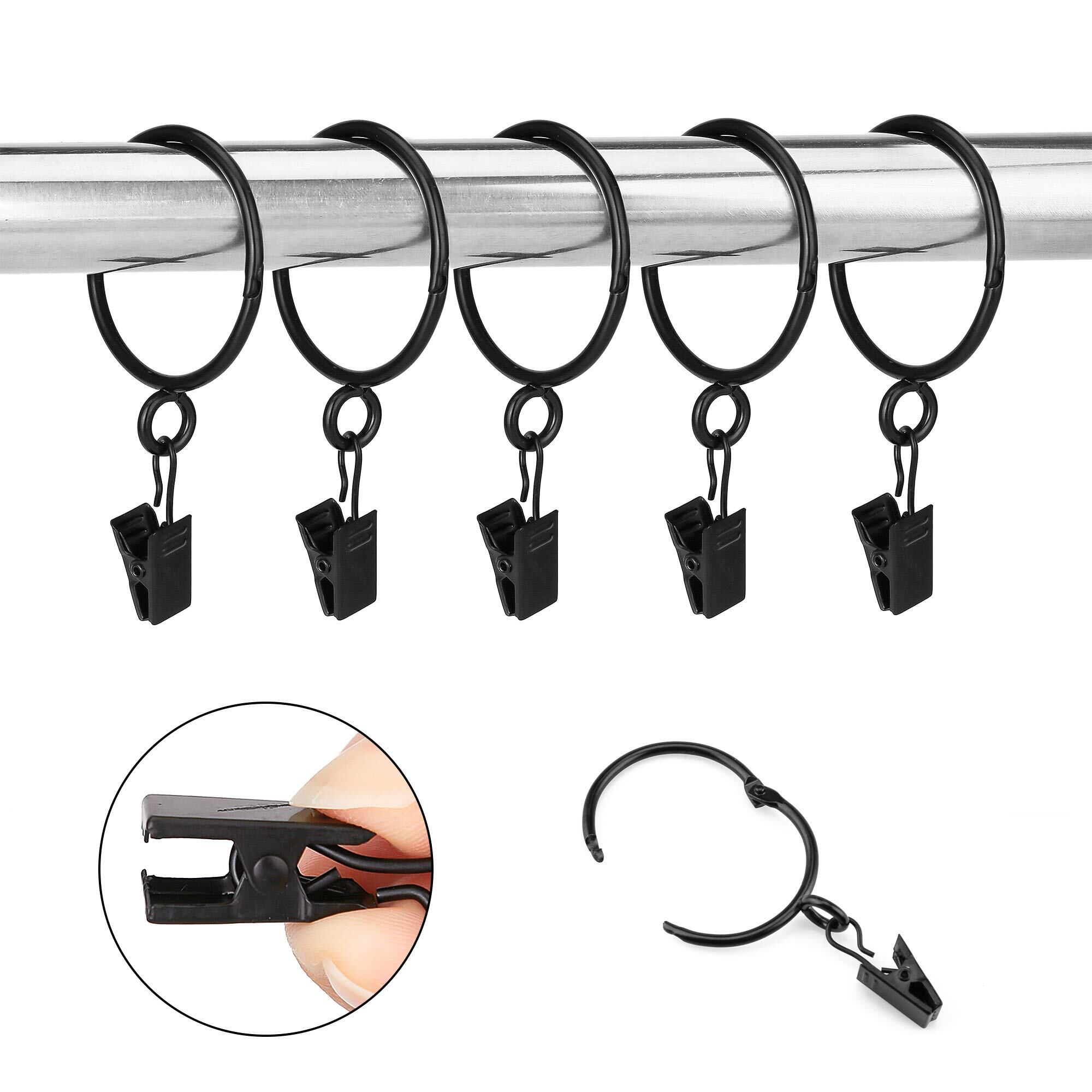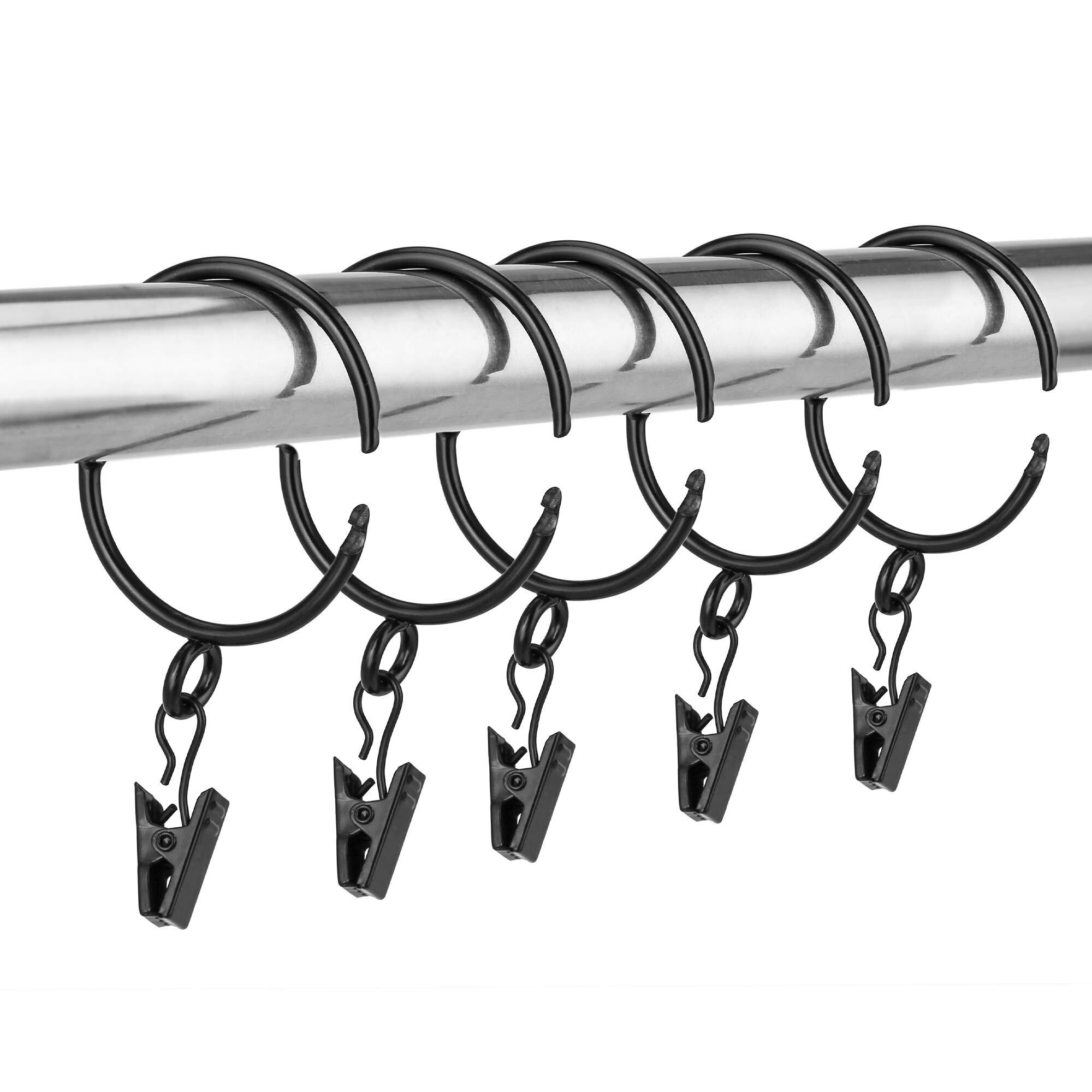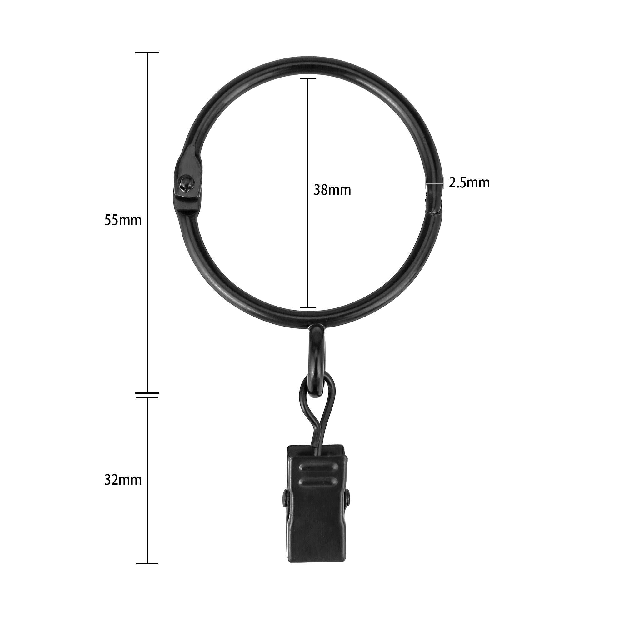 KaiYiカーテンリングクリップ 黒 クリップランナー 内径38mm カーテン リング フック 開口 取付簡単 スチール製 10個セット