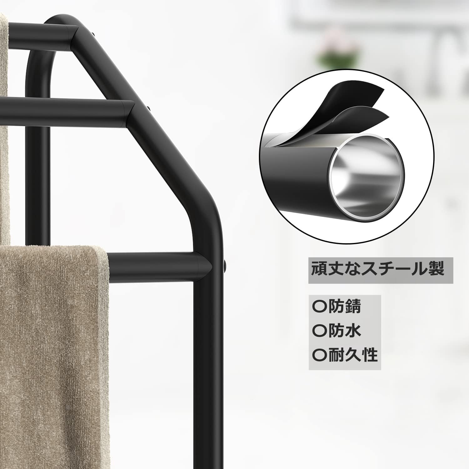 タオルスタンド スチールラック 収納棚 浴室ラック 収納ラック タオルハンガー タオルラック 物干しスタンド?幅41*奥行30*高さ135cm