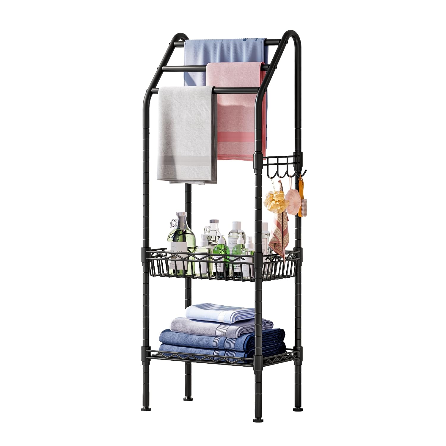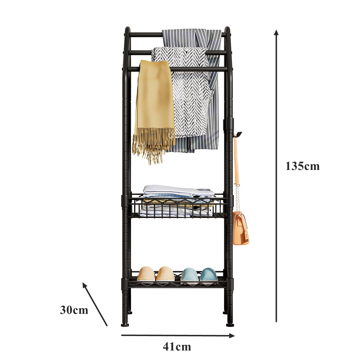 【特価在庫】タオルスタンド スチールラック 収納棚 浴室ラック 収納ラック タオルハンガー タオルラック 物干しスタンド?幅41*奥行30*高さ135cm